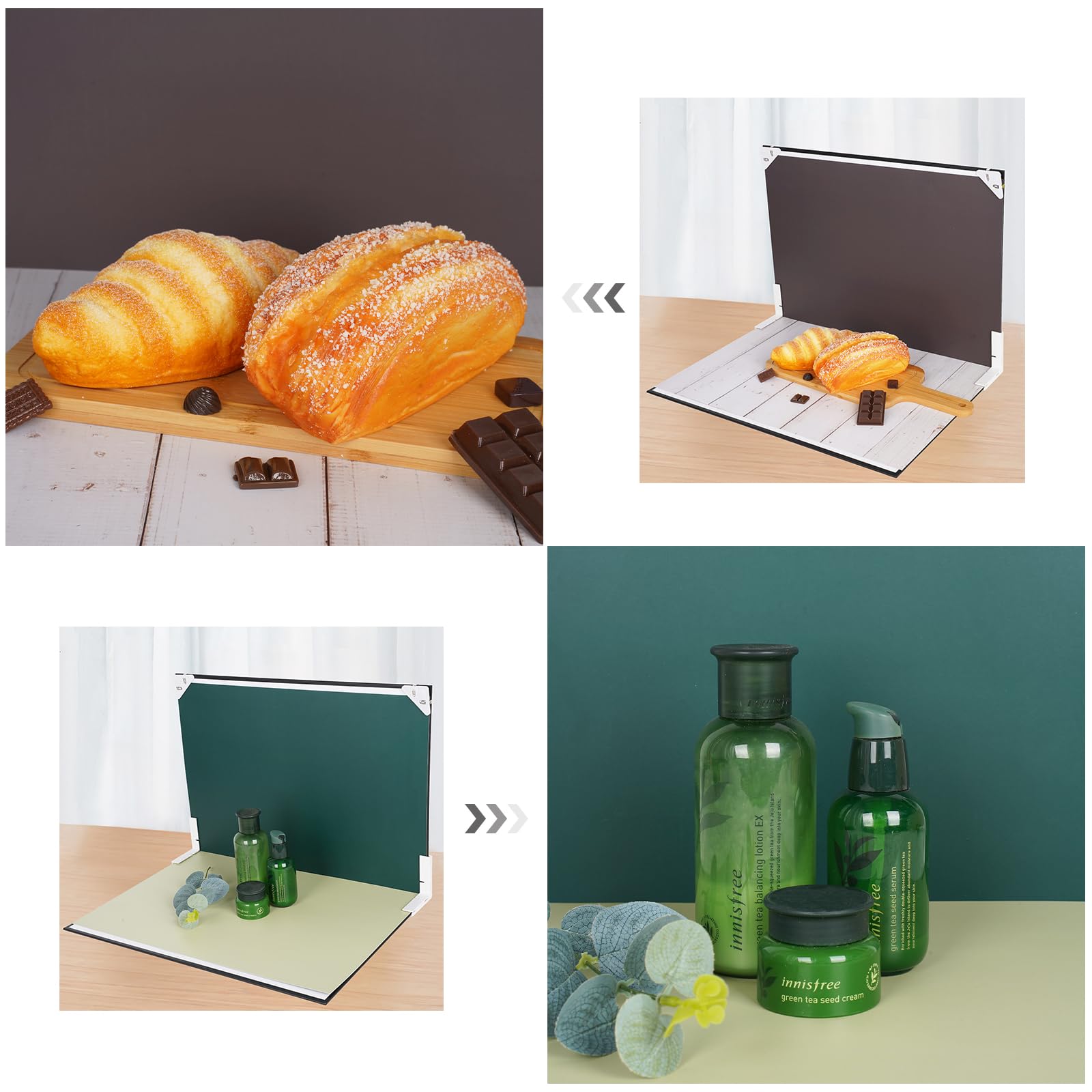 【Multi Color】: This set includes 12 pieces double-sided background in 24 vibrant colors,1pcs collapsible black & white photo backdrop boards,perfect for product photography,food photos and content creation.