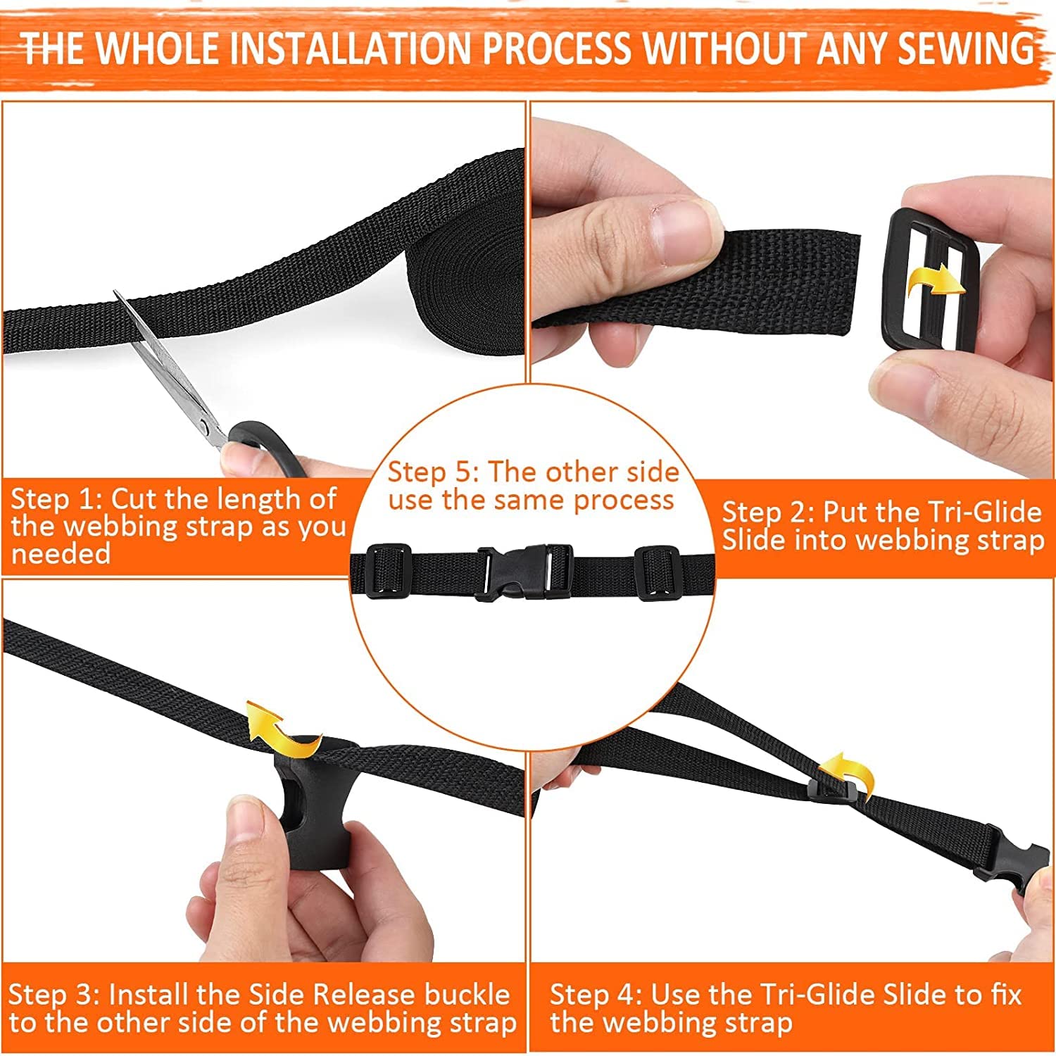 No Sewing Required: The Dual-side adjustable anti-slipping Tri-Glide Slide to lock the straps more securely and firmly. you can install one on each side of the webbing, easy to use, perfect for your daily life and work.