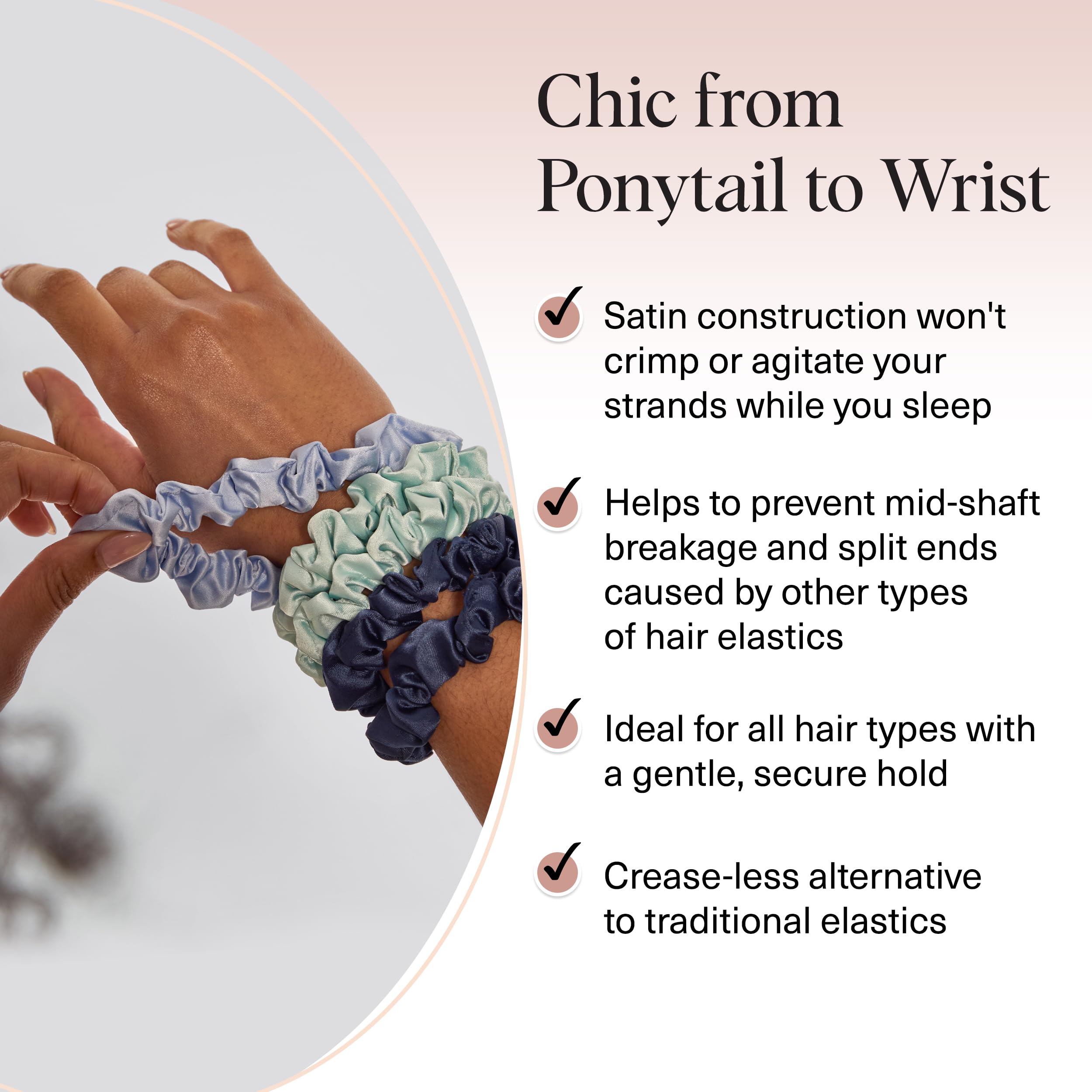 YOUR NO-CREASE HAIR TIES: Experience the ideal satin hair ties no damage for girls and women seeking great hairstyles without compromising hair health. Made with no-crease elastic, these satin scrunchies won't pull on or break your hair like regular elastic hair ties or hair bands.