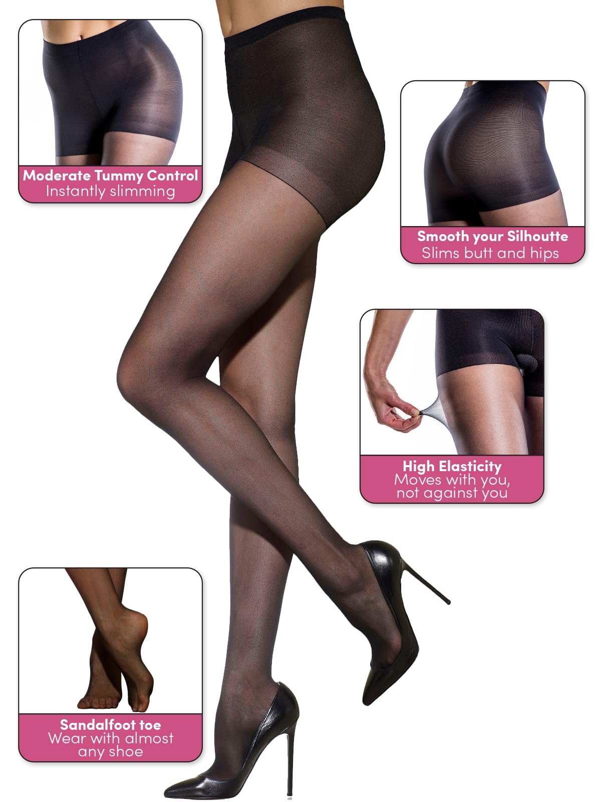 All-Day Comfort and Fit in Jet Black: Experience ultimate comfort with black tights for women that provide a perfect fit; designed to stay in place without slipping or bunching. This sheer pantyhose provides dependable wear from day to night.