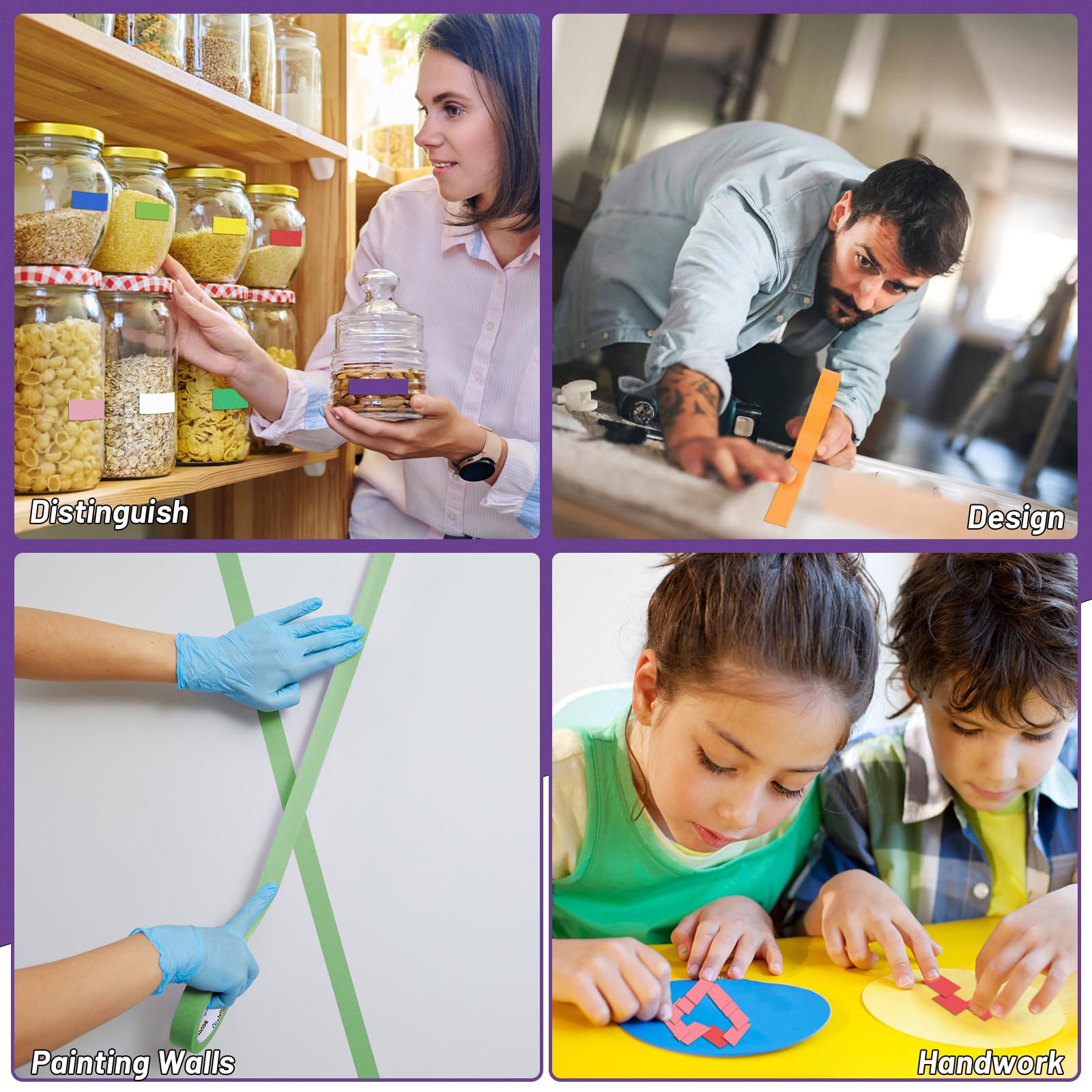 Easy Peel and Stick: masking painters craft tape is good for home and industrial painting.with its tear-by-hand material, it is safe and easy to rip without using scissors! it is also completely removable without leaving any adhesive residue and can easily be reapplied so it's perfect for diy projects, designs, and arts & crafts activities