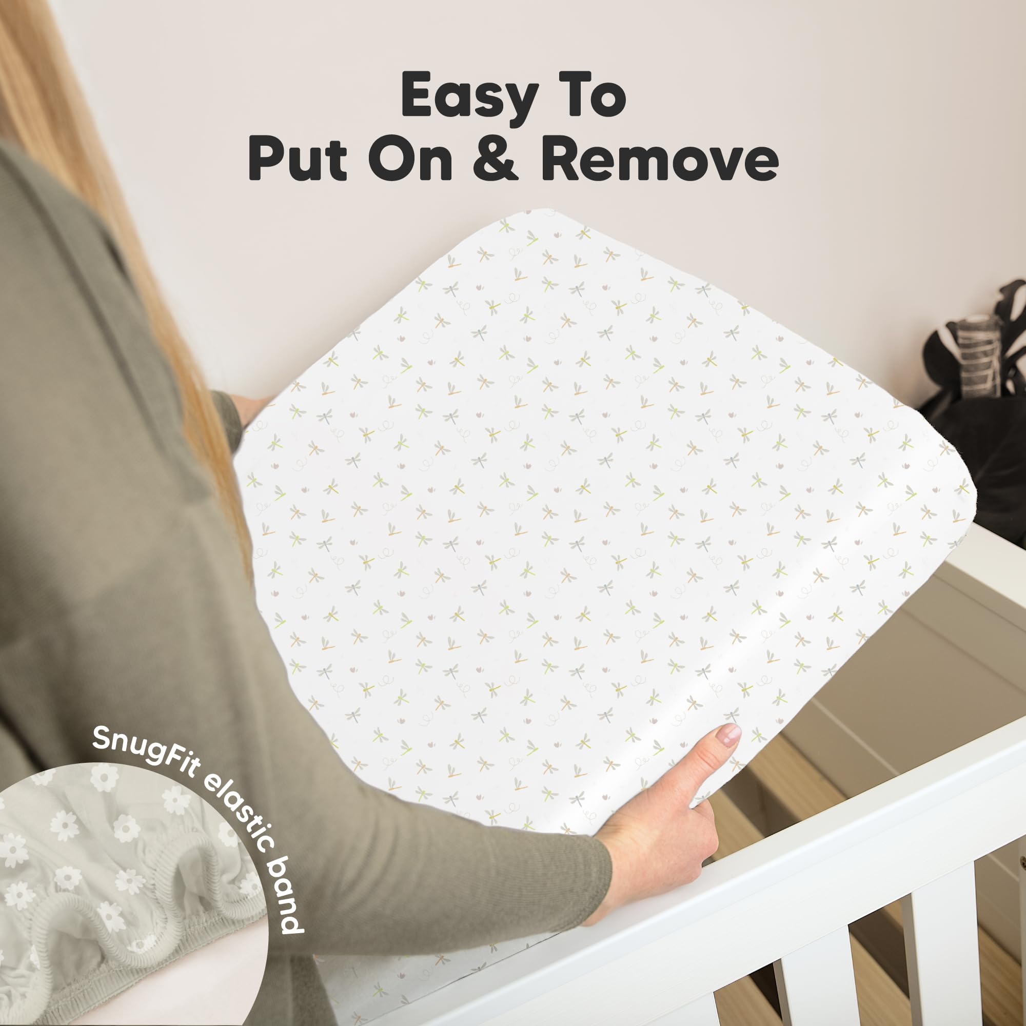 Easy To Put On - Our baby sheets for crib use SnugFit Tech, a smart fabric knit that stretches effortlessly for quick fitting and removal of the toddler bed sheets. No more struggling with rigid fabric!