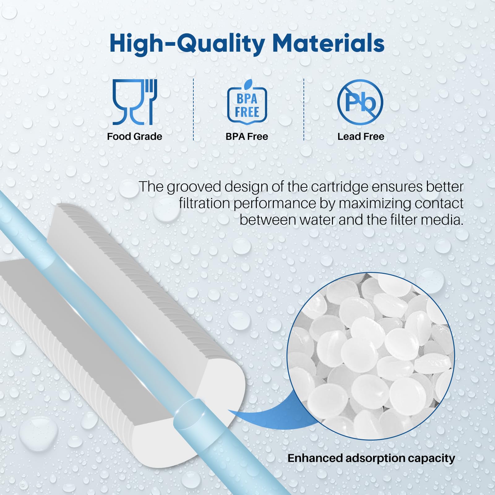 ❄️ 【Recognized Certification】 Food Grade Material Meets European EC1935-2004 Regulations, Australia Water Mark, REACH, BPA FREE Certified. This kind of filter is recommended for tap water filtration. If your water source is well water, this filter may not achieve the filtering effect you expect.