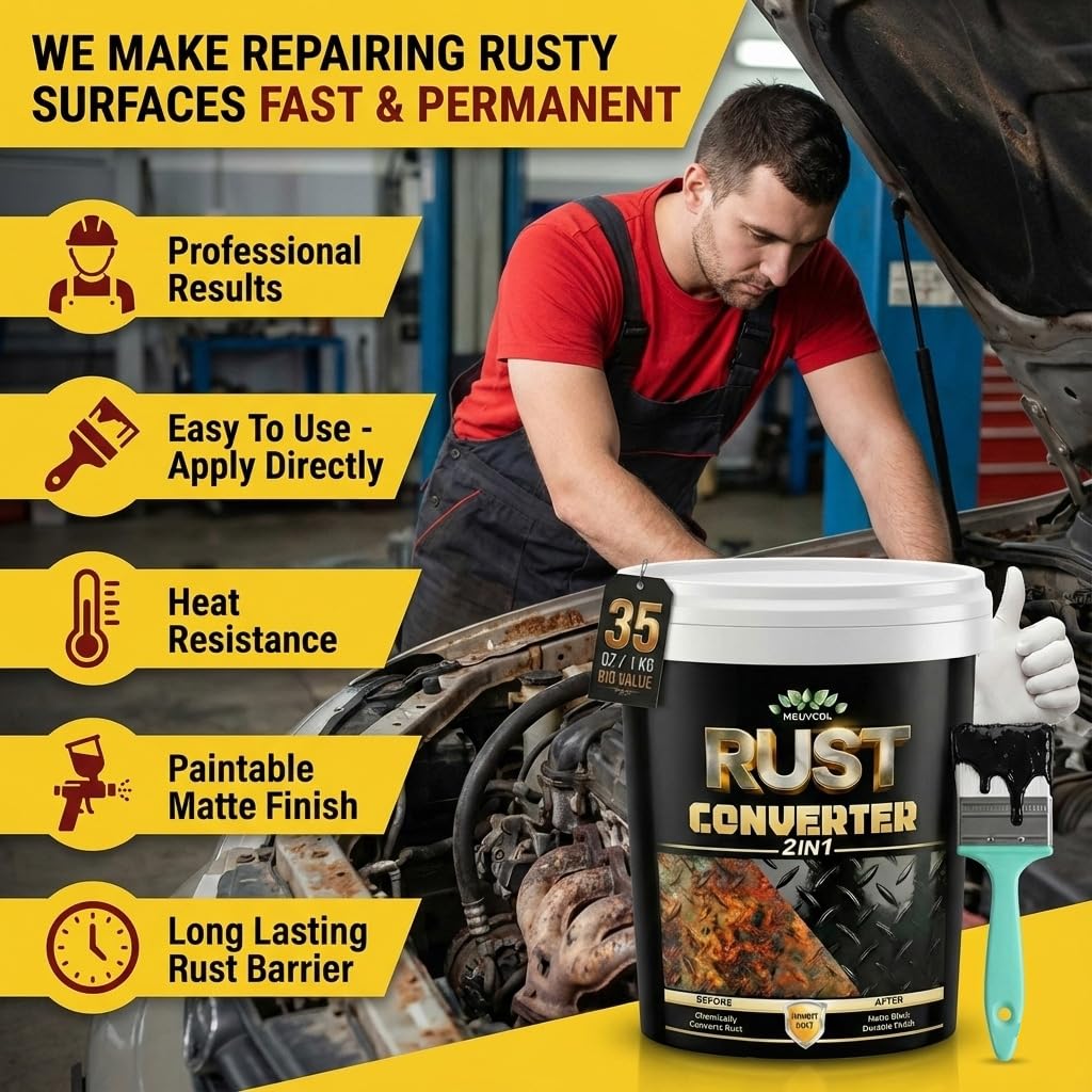 High-Performance Rust Protection: Meuvcol Professional Rust Converter is the gold standard in high-performance coatings. Rust inhibitor is a single-component, ready-to-use rust encapsulator paint providing exceptional sealing properties to protect a variety of surfaces from water, chemicals, salt, corrosive contaminants and everyday wear and tear.