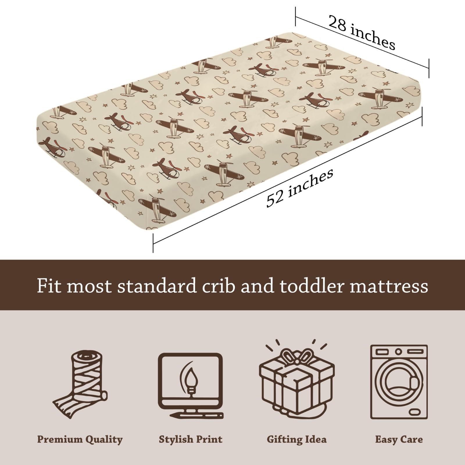 [size]-28x52 inches=71x132 cm [Quality]-Made from soft and breathable polyester materials that are gentle and comfortable to your baby's skin. These sheets offer both quality and comfort, making them suitable for ensuring a peaceful and restful night's sleep for your little one. -Our sheets are designed to withstand regular use and washing without losing their softness or elasticity. You can rely on our crib sheets to offer a comfortable sleeping environment for your baby. -The elastic band ensure a secure and snug fit around the mattress, preventing slipping or shifting during sleep. This ensures that your baby stays cozy throughout the night, giving you peace of mind knowing that they are sleeping soundly. [Stylish Print]-We features a versatile color palette that is suitable for both boys and girls, making it the suitable addition to parents who want to create a welcoming nursery for their little one. With its design, versatile color palette, our print is sure to enhance the decor of your nursery and offer a comfortable and inviting space for your baby. [Gifting]-This baby crib sheet is a must-have item for new parent's baby registry and is a wonderful gift idea for a mom-to-be. It is not only practical but also thoughtful, making it a suitable choice for whoever looking to give a meaningful present or to celebrate the arrival of a new little one. [Easy Clean]-Machine wash or hand wash in cold water on a gentle cycle. Avoid using high heat or bleaching. -Our durable fabric maintains its shape and softness even after multiple washes. [Customer Service]-Our team is here to assist you at every stage of your journey. Whether you have questions about caring for your baby or are seeking suggestion on the practices for their well-being, we are available to help.