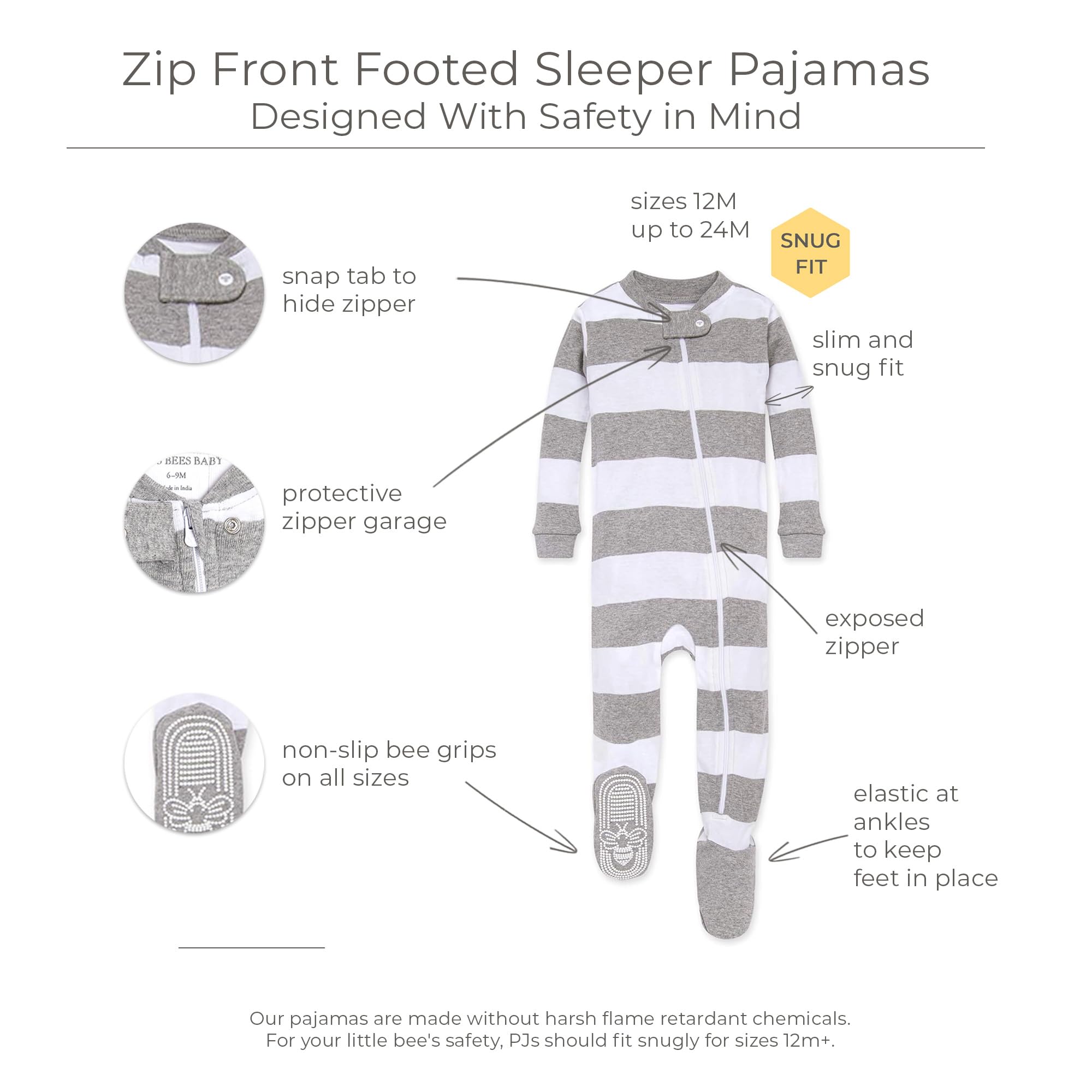 Bee Grips: Burt's Bees Baby boy's PJ has a non-slip ""bee grip"" on the bottom of the footie to provide stability for early movers, ensuring your little bee stays steady during playtime. Seasonally, we offer footless options for warm weather months.