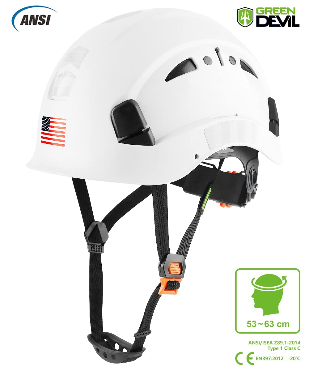 【Reliable&Stylish New Generation Safety Hard Hat】:GREEN DEVIL safety hard hat is made of high impact penetration resistant ABS materials, lightweight, strong and comfortable.A good choice to protect heads against falling objects, impacts, bumps, and scrapes.And these safety hard hats meet ANSI Z89.1-2014 Type I Class C standards, also approved by CE(EN397:2012 -20℃). Give you and your company the ideal choice in ANSI Type I head protection.