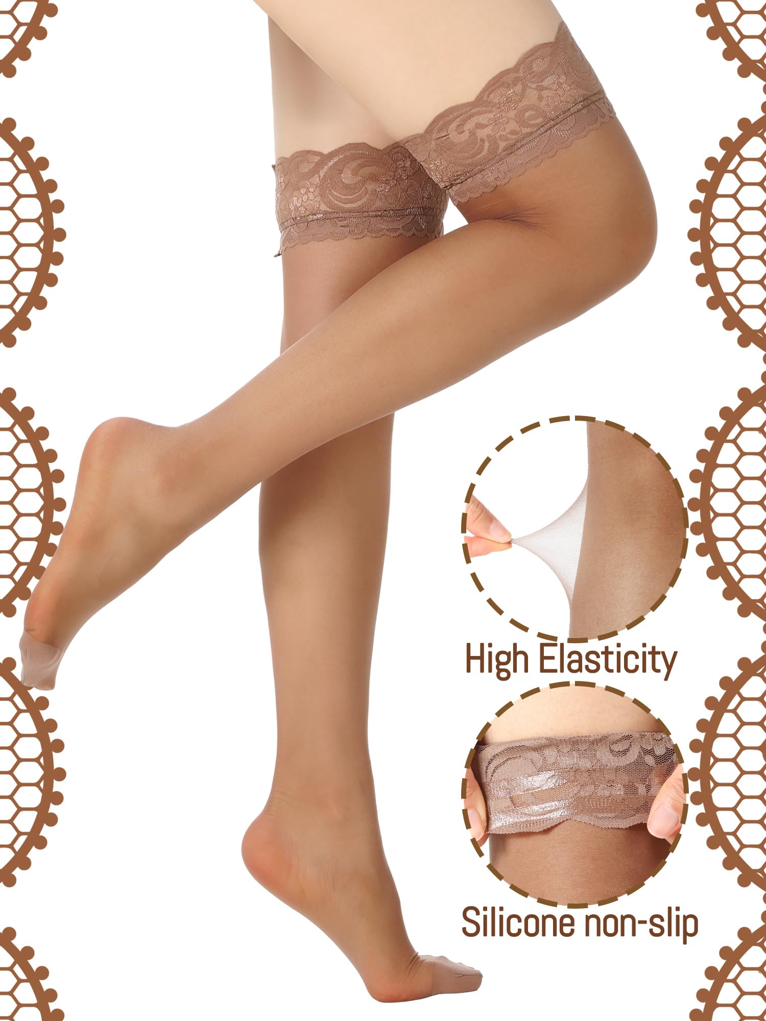 Anti-slipping design: beautiful lace pattern of the thigh stockings is suitable for women and girls, highlighting nice body line, also the top part of stocking equipped with silicone band for anti-slipping, convenient for daily using