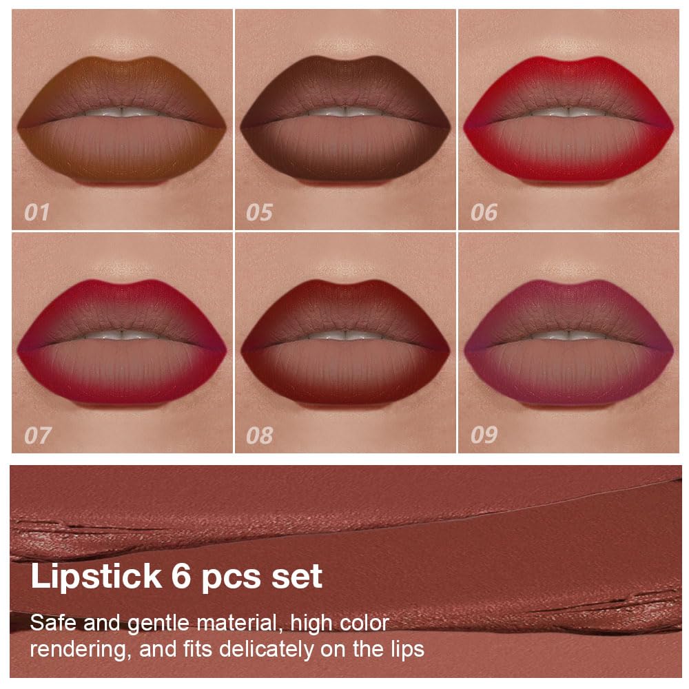 【6 Stunning Shades for Every Mood】From mauve and maroon to ruby and plum, this versatile set includes 6 richly pigmented lipsticks and matching lipliner pencils. Whether you're going for bold drama or everyday elegance, these shades offer endless possibilities for every skin tone and occasion.