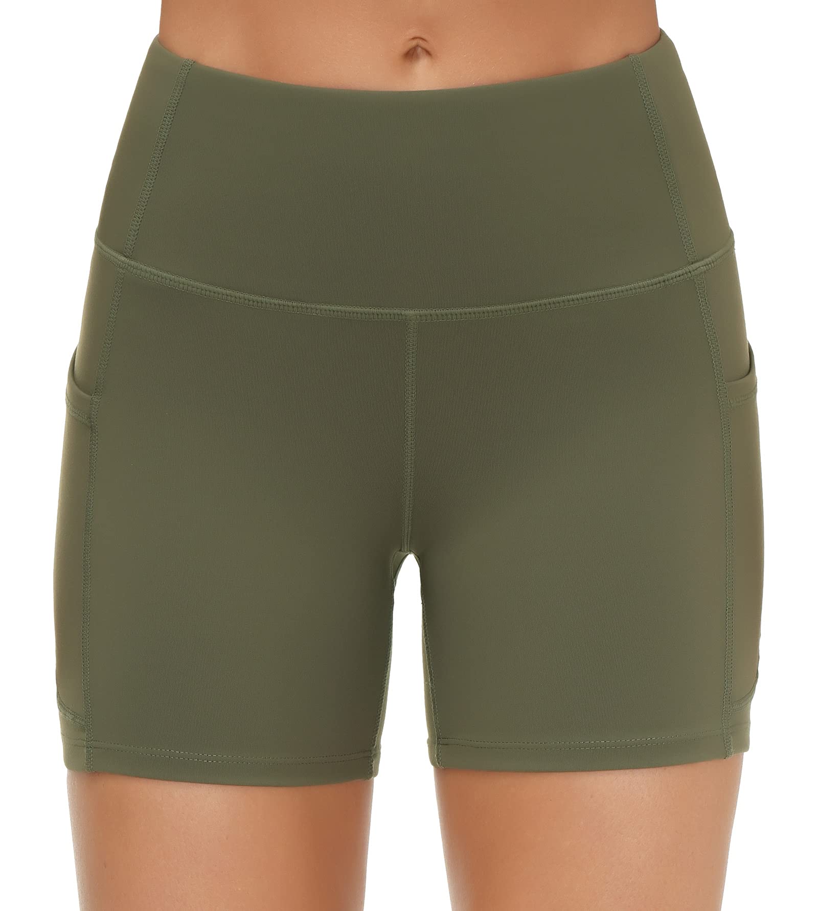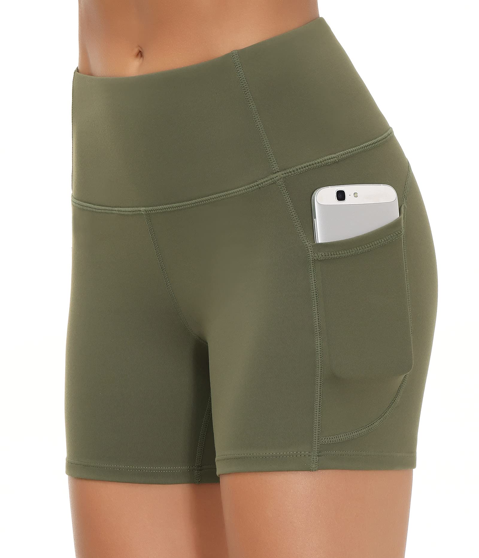 [Keep Perfect Shape] - High-waisted style with tummy control design. Wide waistband contours body curves and streamlines shape help to promote yoga shorts both compression and support.