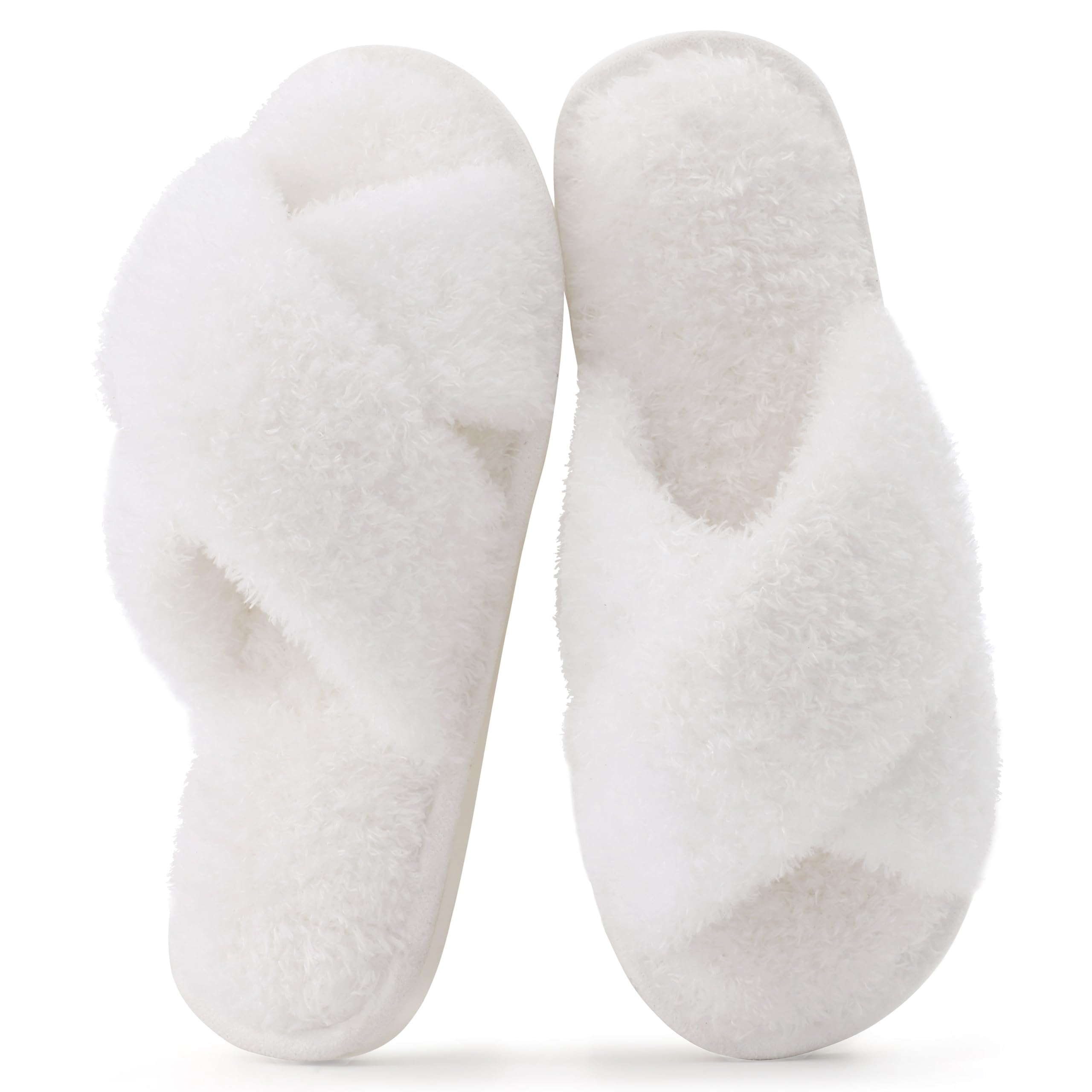 FUZZY HOUSE SLIPPERS: Fuzzy faux fur upper and footbed surround your foot in cloud comfort, making your feet cozy. A good choice for reducing muscle fatigue after a long day of work.