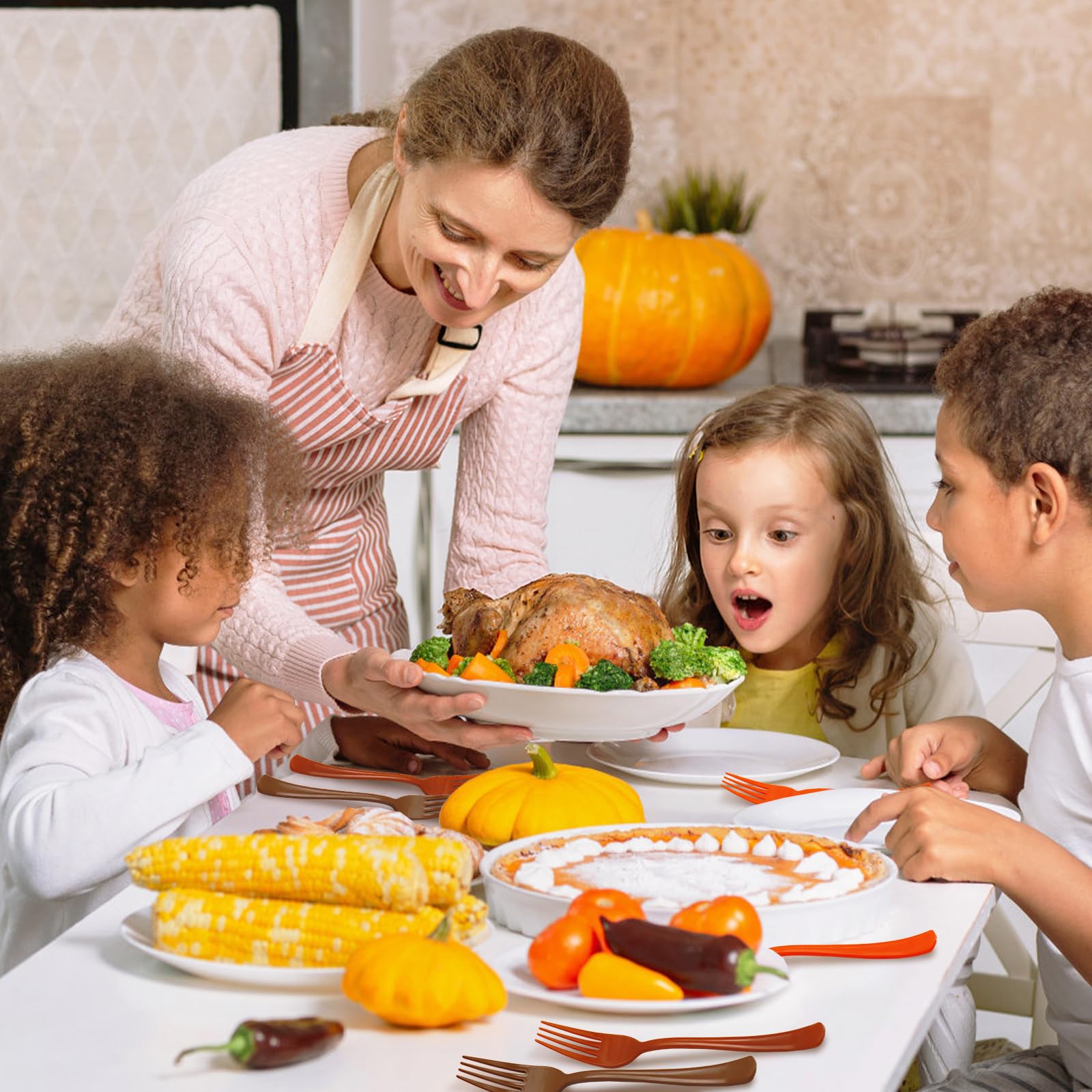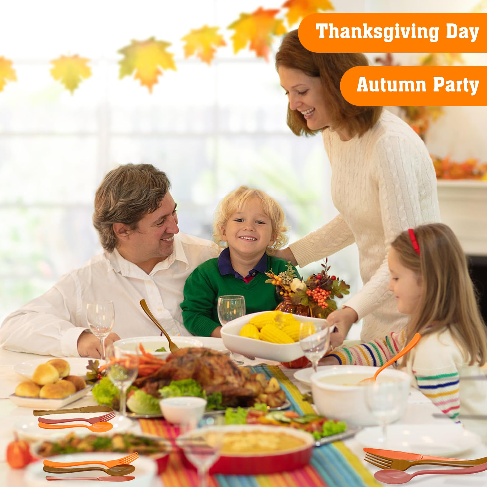 【Perfect for Thanksgiving Decorations】: These Thanksgiving plastic forks are perfect for fall party, Thanksgiving, birthday party,family gathering and more. As family and friends gather to celebrate this special day, decorate your table with plastic cutlery to create a warm, happy atmosphere.