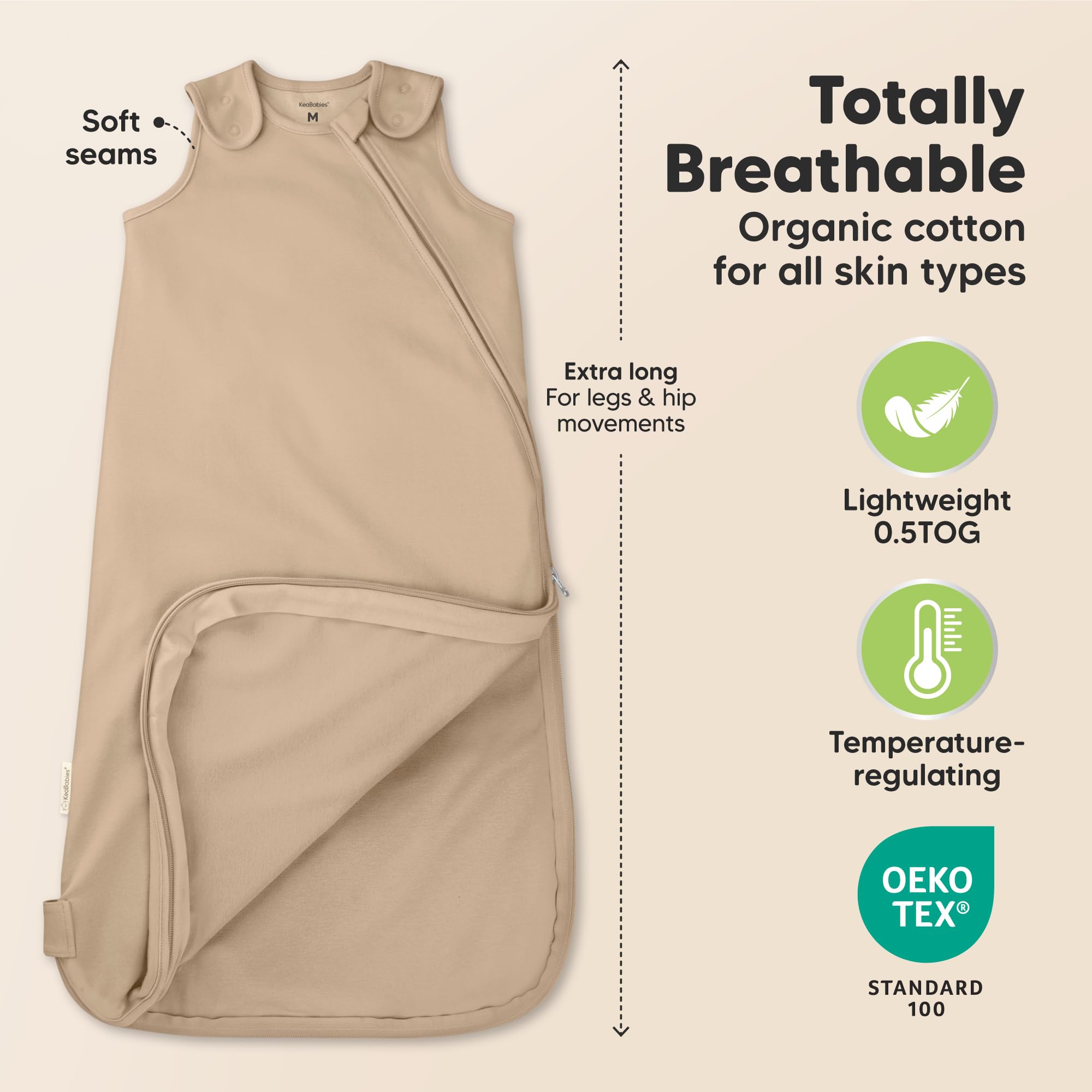 Breathable & Temperature-Regulating - Made with ultra-soft 0.5 TOG Organic Cotton, our lightweight cotton sleep sack is highly breathable and is intended to be worn over baby’s sleepwear for comfortable layering.