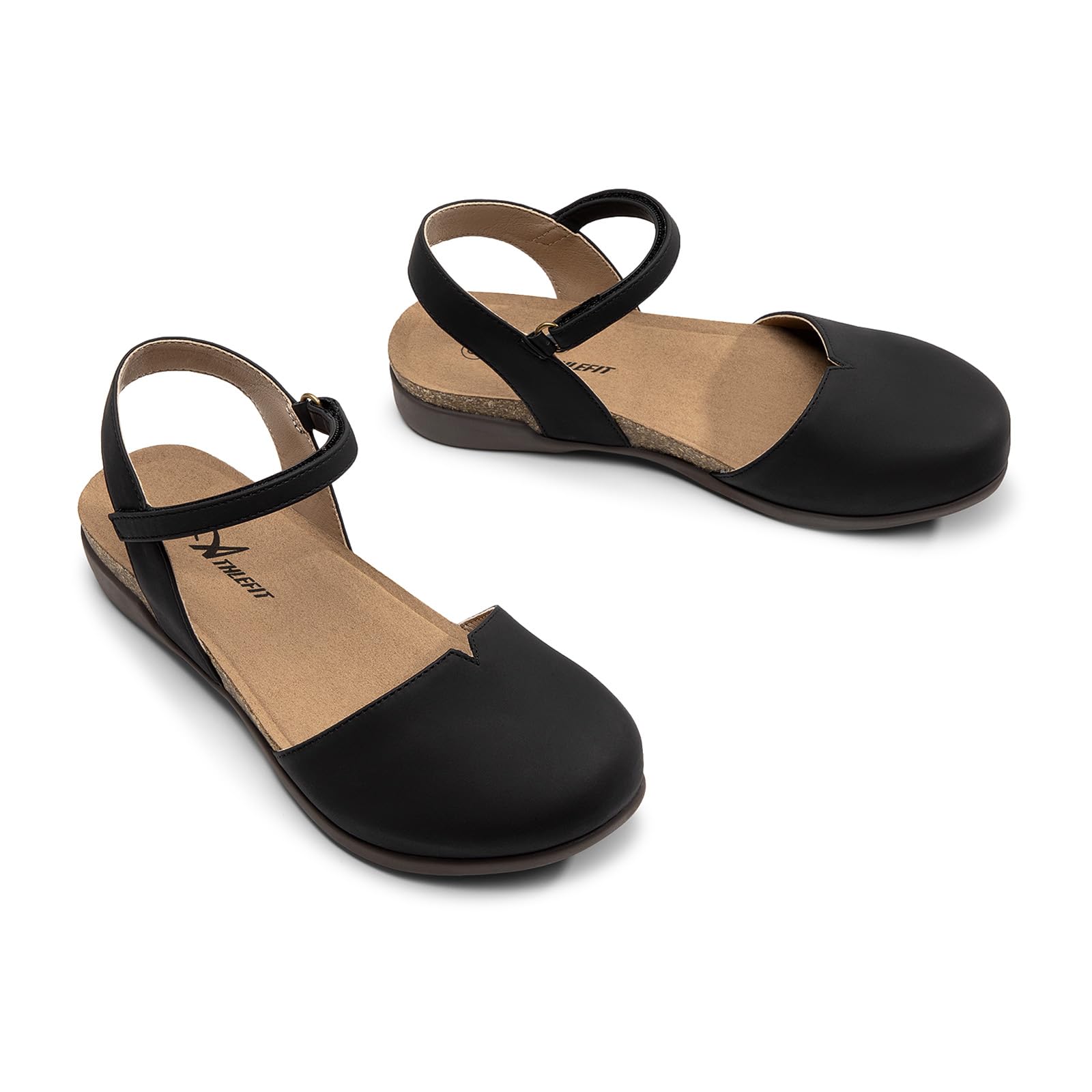 Material: Women's closed toe sandals are made with smooth leather upper and TPR non-slip soles, providing stability and comfort with every step.