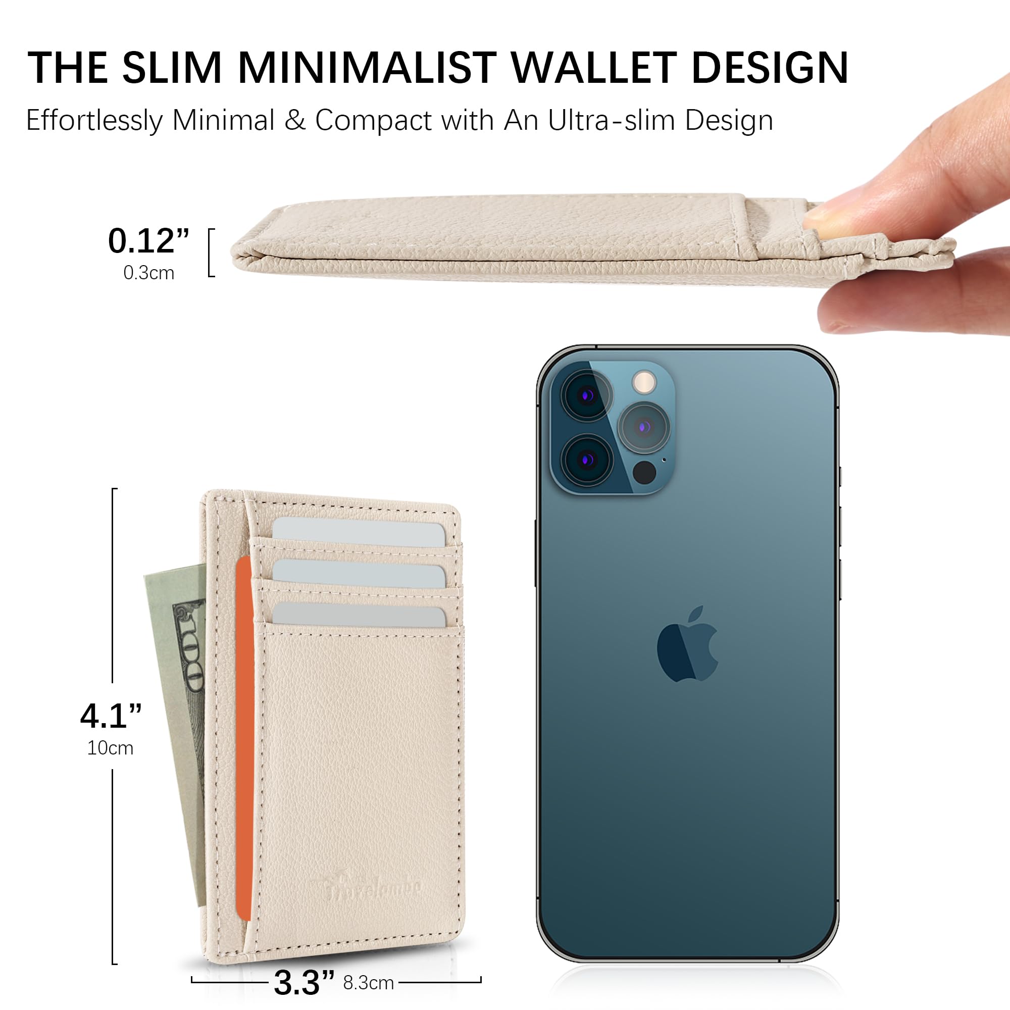 SUPER MINIMALIST & SLIM: Only 0.12" thick; Sizing 3.3" x 4.1" x 0.12"; extremely convenient to be carried around in your front or back pocket.