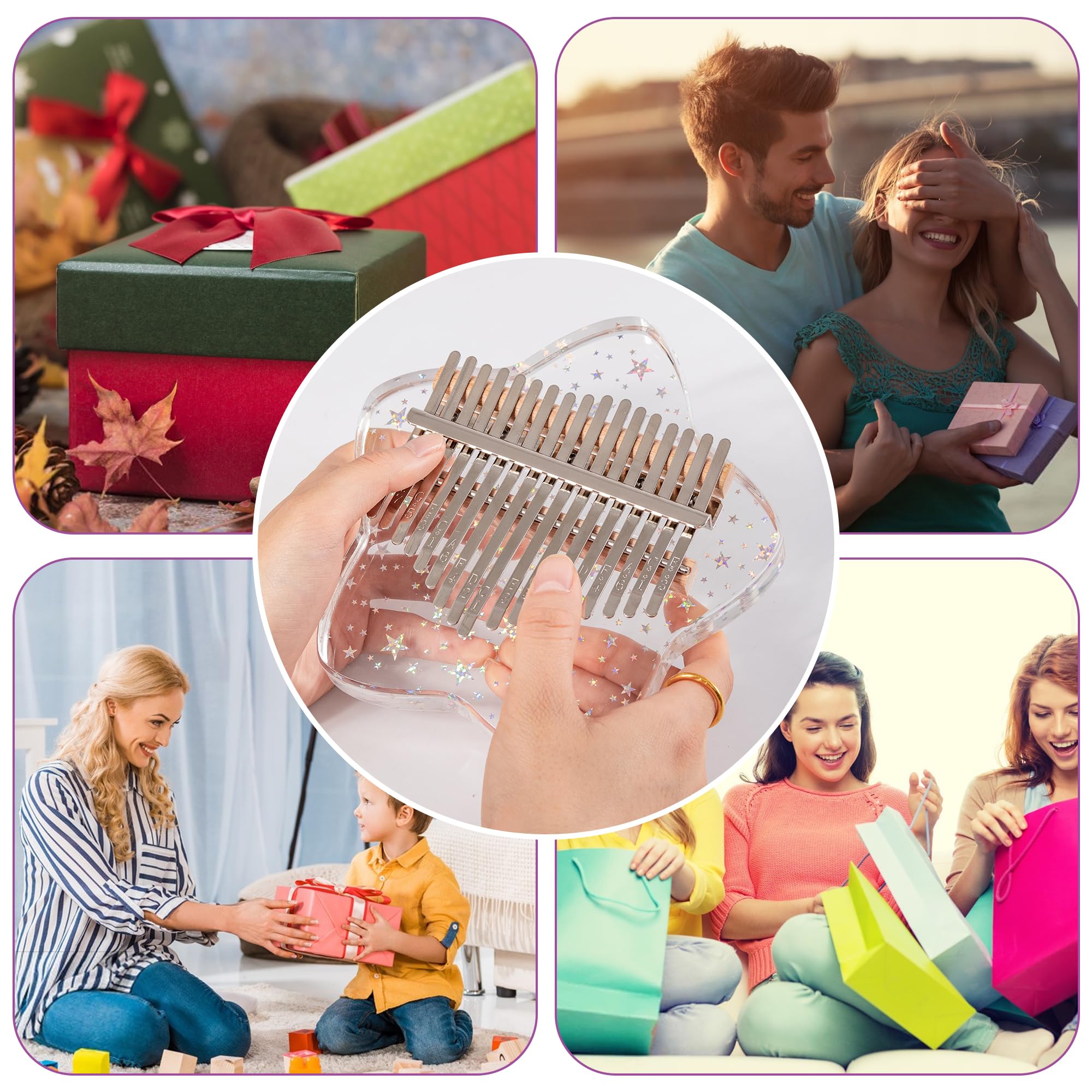 【Sturdy Transparent Acrylic Material】The crystal acrylic finger piano is made of crystal acrylic material.The body is add star element and star shaped style,17 keys quality carbon steel keys,the sound from the tines is beautiful and crisp.Carefully polished corners make the body feel mellow.