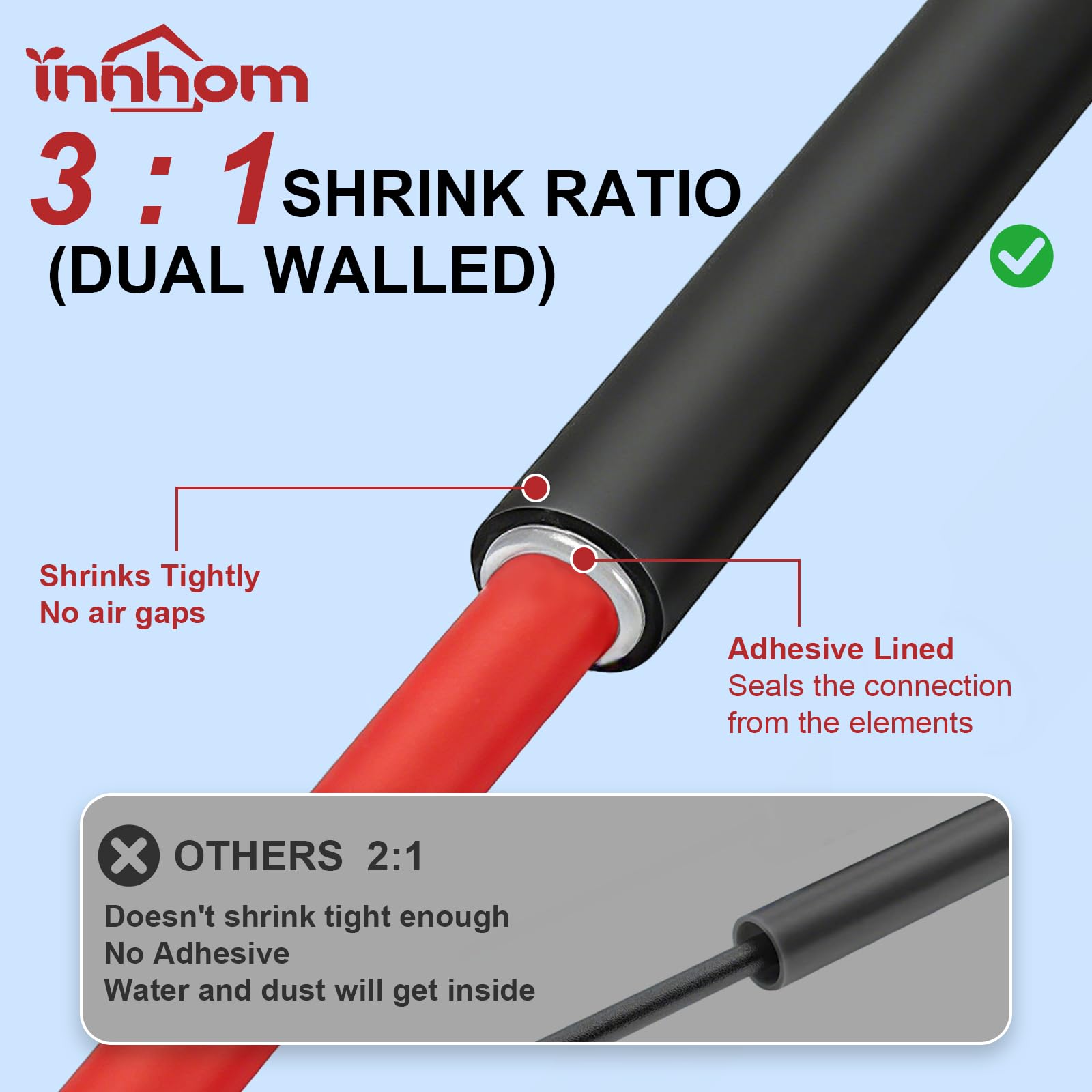 Effective and Long Lasting Protection: innhom heat shrink has the advantages of good tightness, acid and alkali resistance, durable and anti-aging. Use innhom heat shrink tubes instead of ugly and short-lived electric tape.