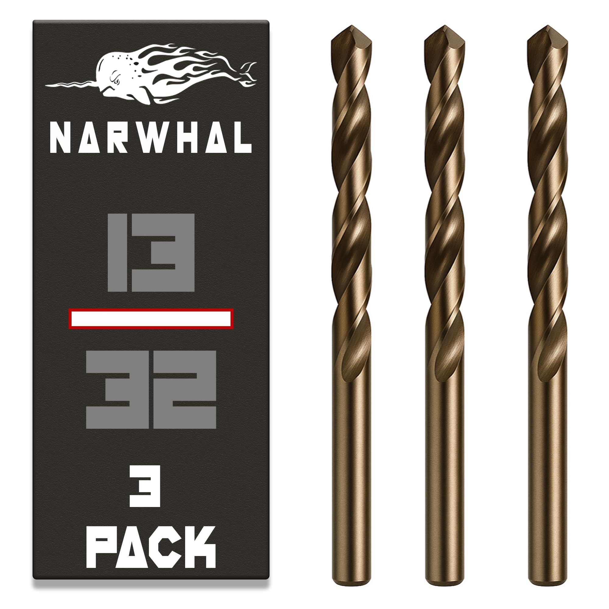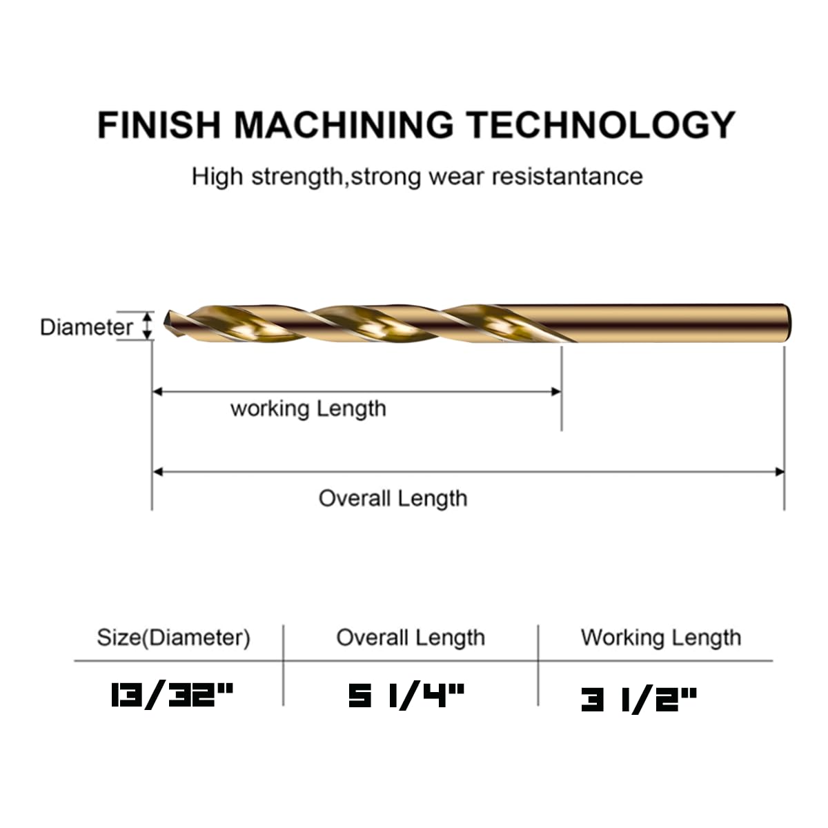 3 PACK OF 13/32" COBALT DRILL BITS - 13/32" Diameter with a Flute Length of 3.5" and Total length of 5.25"