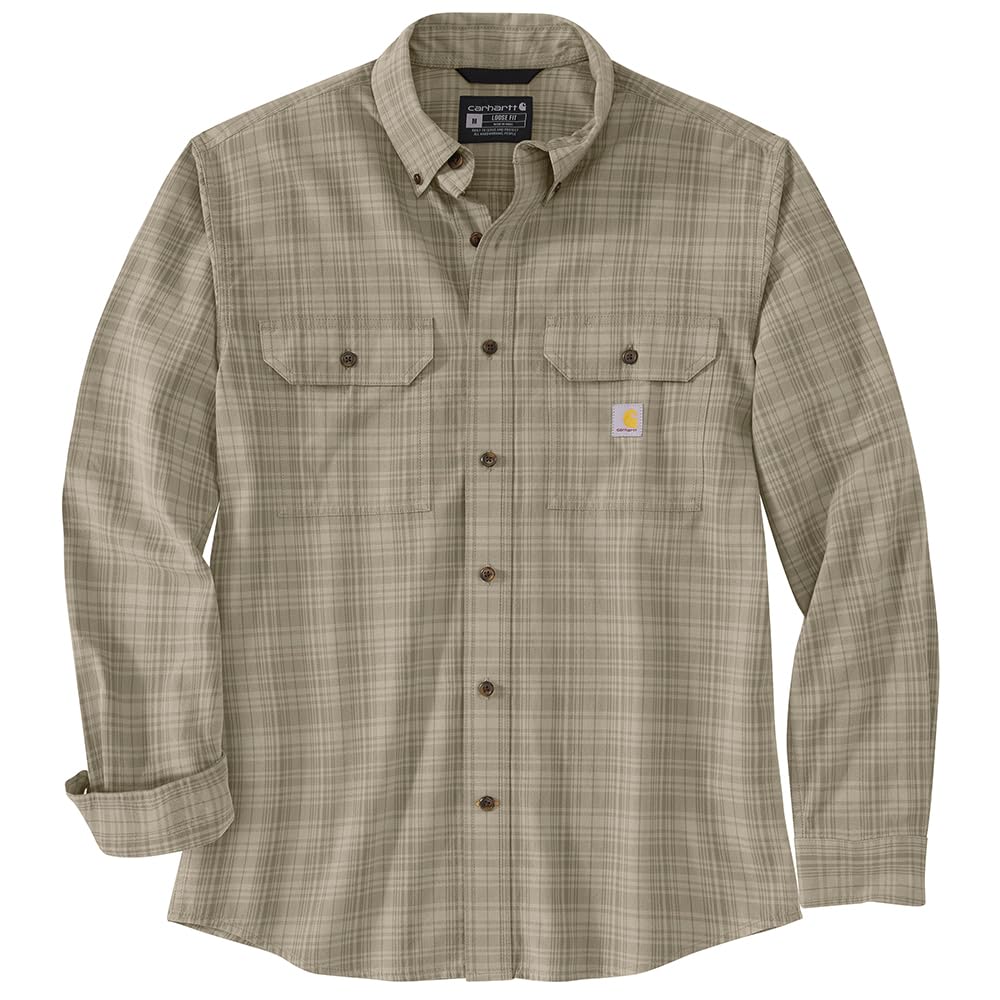 Description Made to be worn tucked or untucked, this men's Carhartt flannel shirt features a midweight cotton blend with just the right amount of stretch for an unrestricted range of motion. A loose fit allows for easy layering and a natural range of motion.