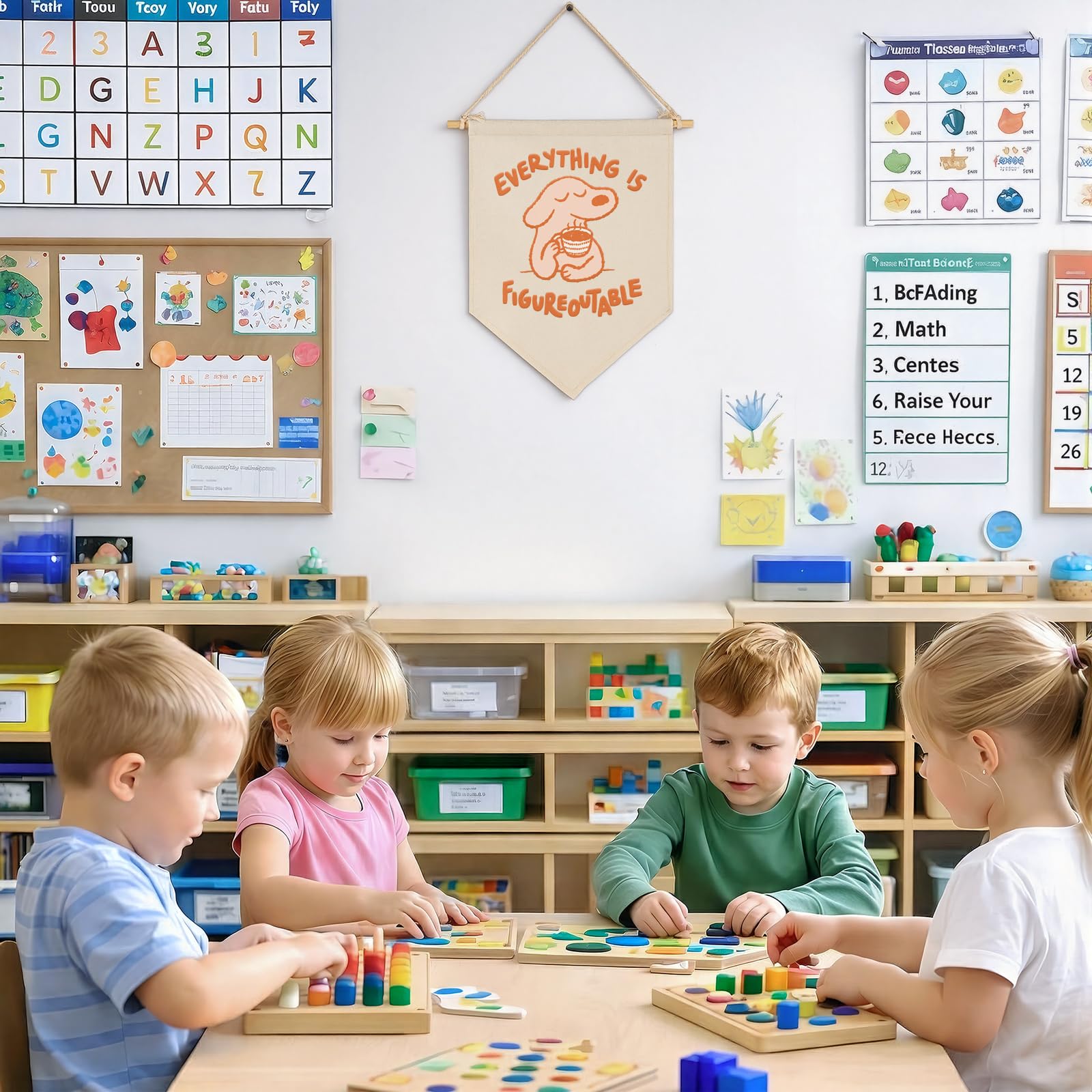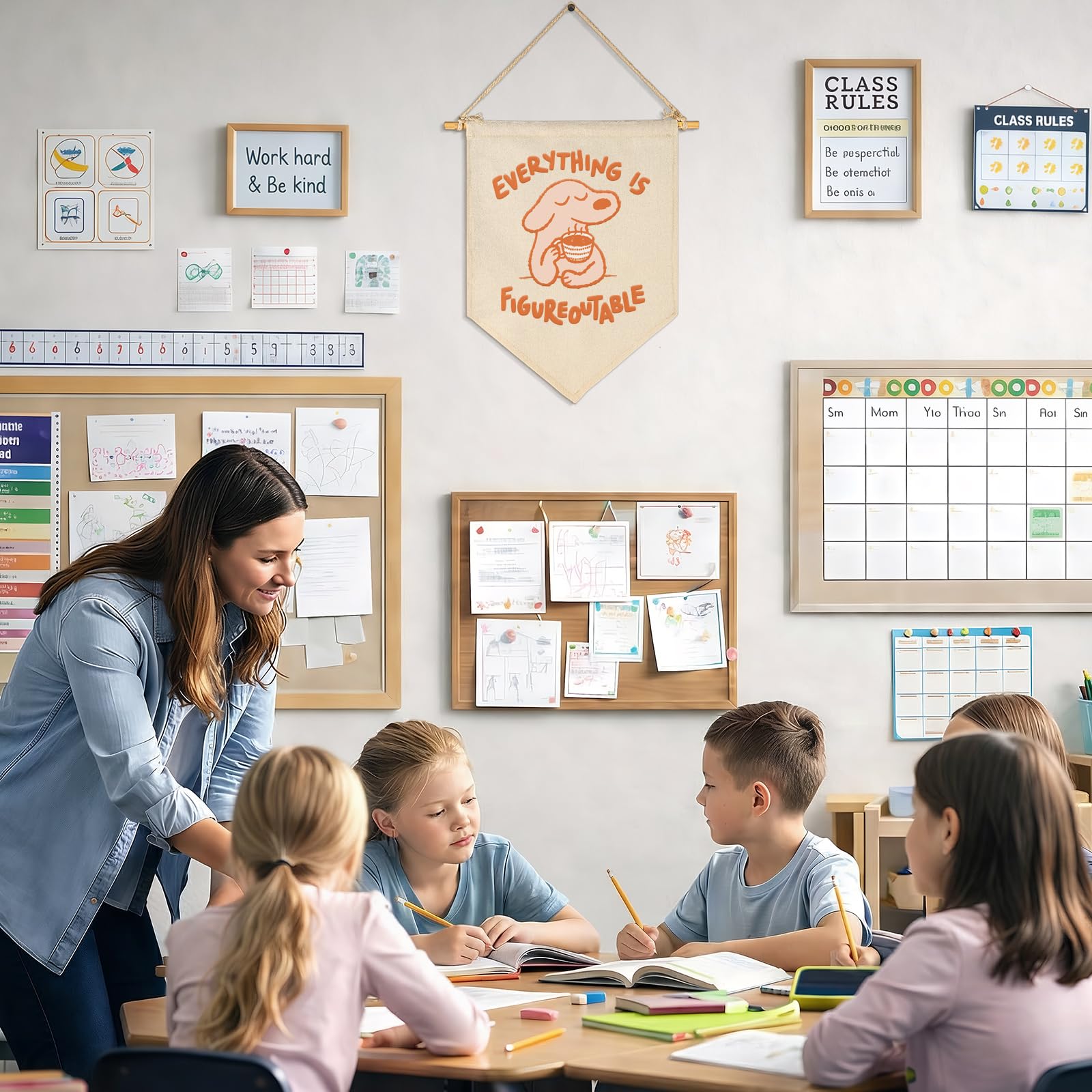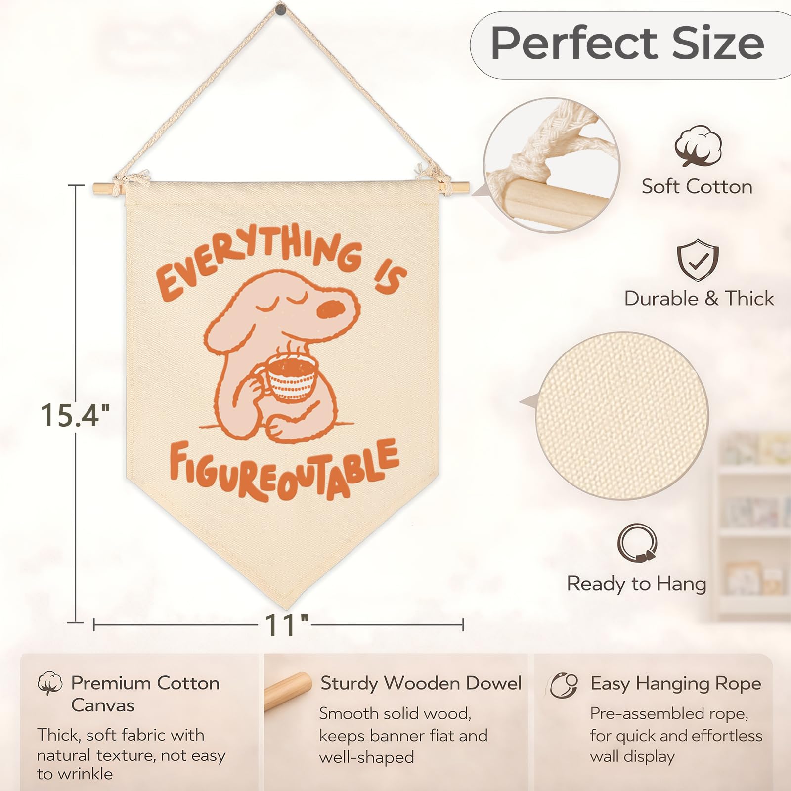 Promote emotional well-being and a growth mindset with our Everything is Figureoutable Canvas Hanging Flag. Measuring 15.4 x 11 inches, this banner is specifically curated for the quiet areas of a school—such as counseling offices, sensory rooms, and classroom calming corners. It acts as a visual anchor for both students and staff, featuring a serene illustration of a calm dog that conveys resilience. Made from premium cotton canvas and supported by a sturdy wooden dowel, this high-quality wall hanging is built to withstand daily school use. Whether you are a counselor looking to warm up your workspace or a teacher building a dedicated space for student self-regulation, this ready-to-hang pennant provides the perfect balance of inspiration and professional decor.