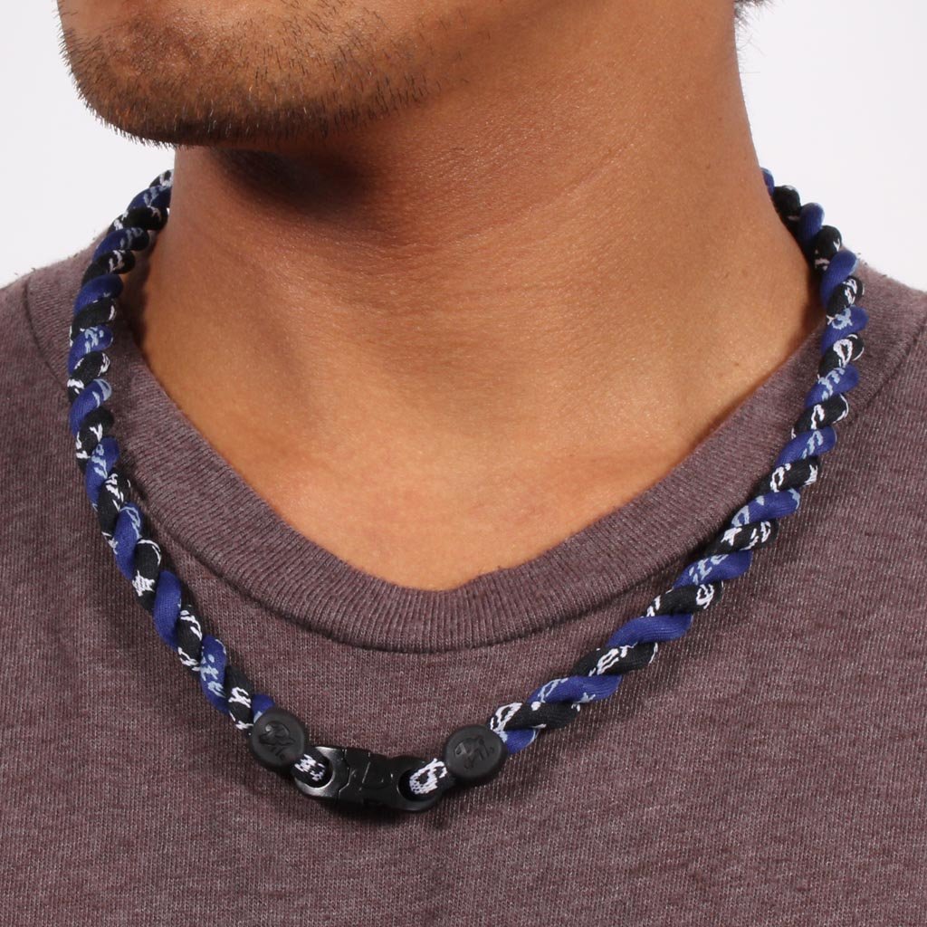 Two Titanium Necklaces are twisted together to form one necklace. Phiten's patented Energy Transport System (ETS) enables the body to realize its maximum potential. Phiten's unique technology helps to reduce fatigue, tension and stiffness caused by stress or exercising.