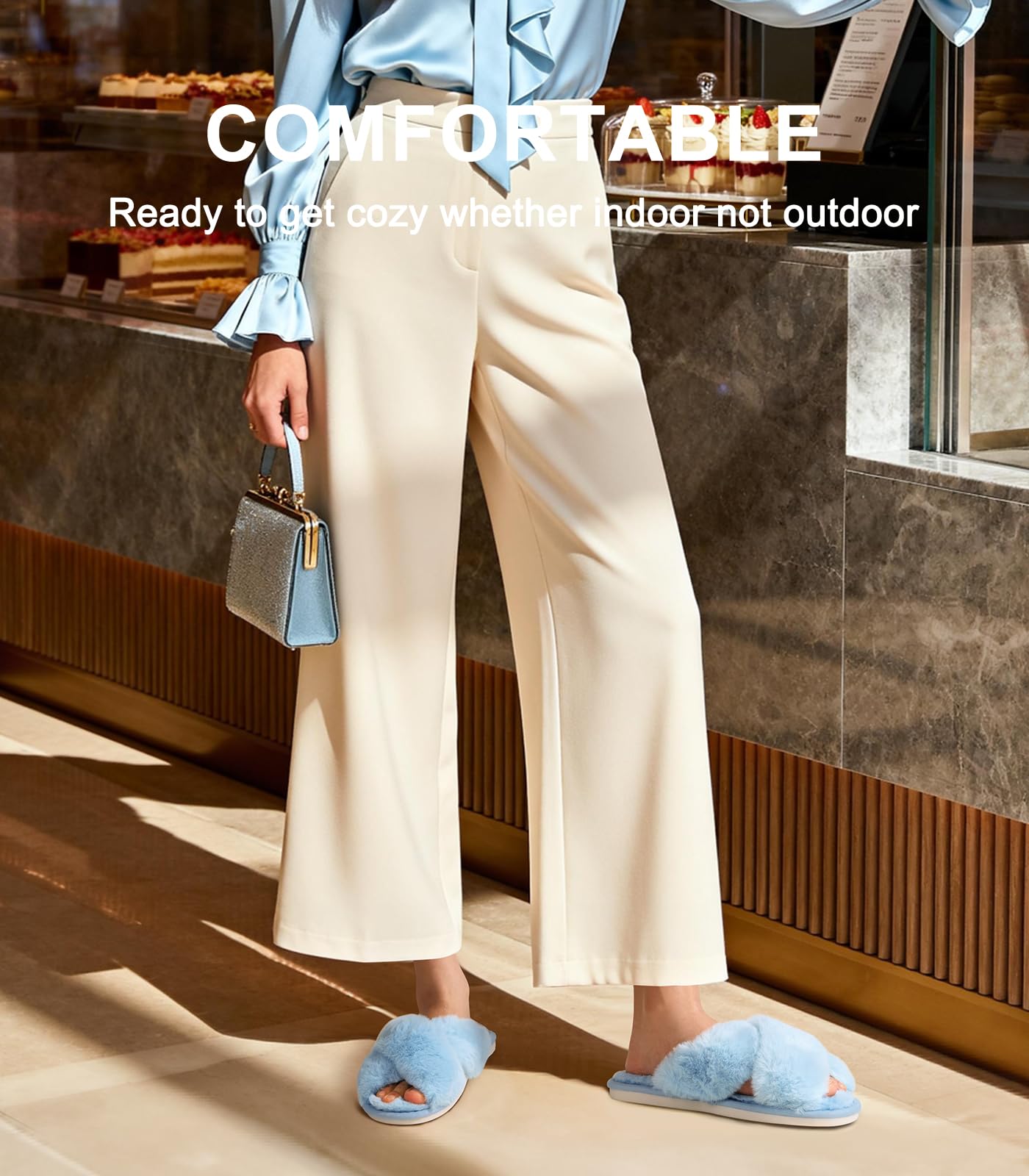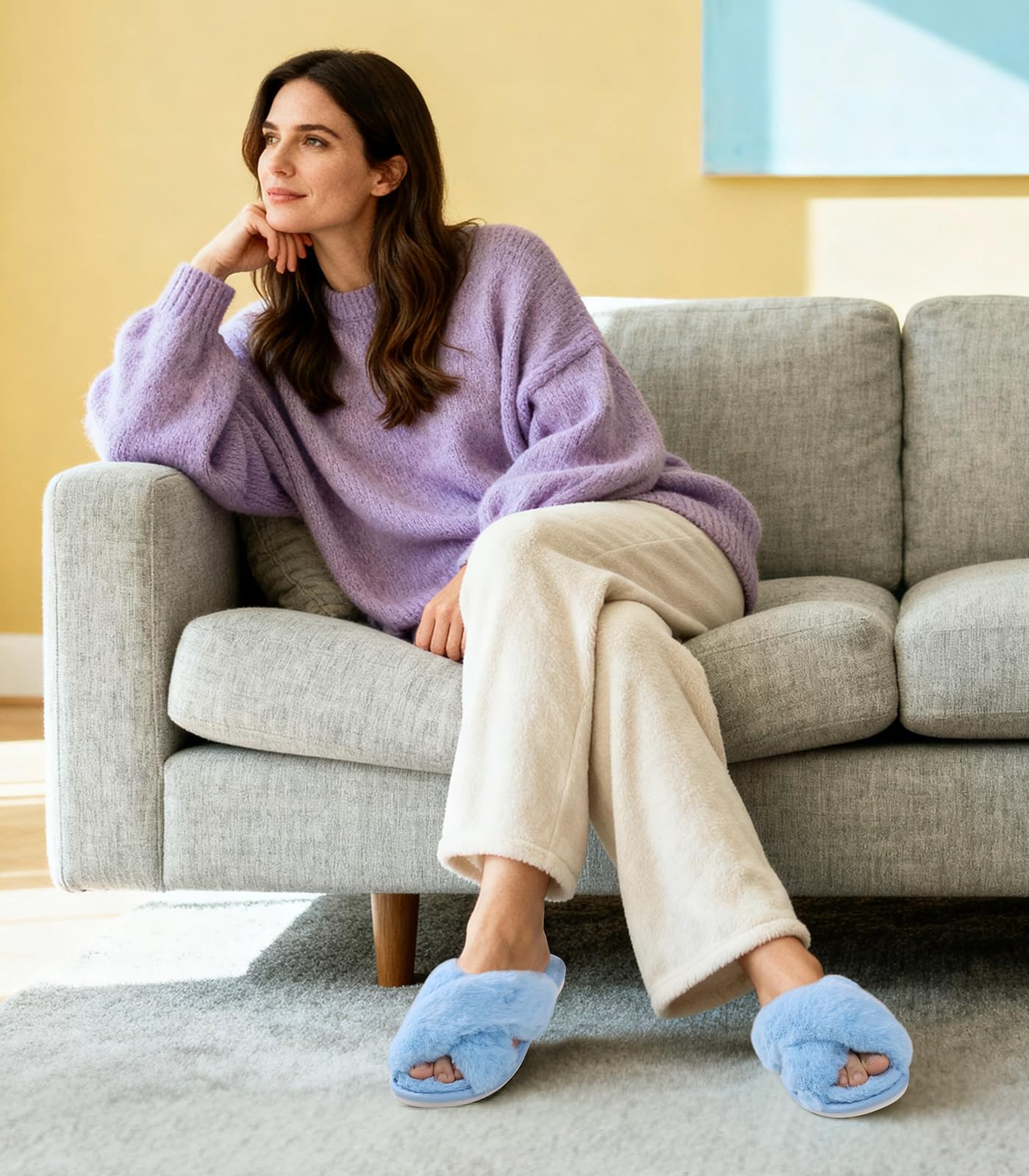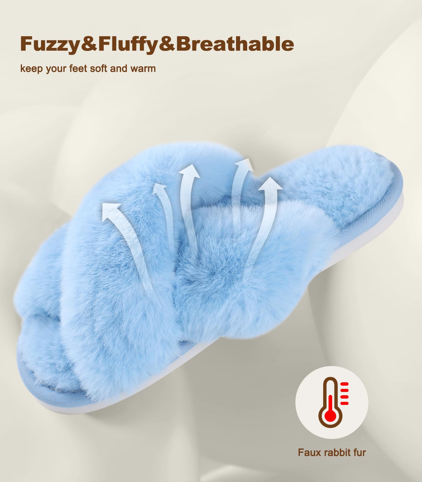 Chic Must-Have Slippers for Women: Ankis fuzzy slippers feature a trendy cross-band design that looks cute and stylish. The open-toe style makes them easy to slip on anytime. Soft plush faux fur keeps your feet cozy while staying breathable for all-day comfort at home