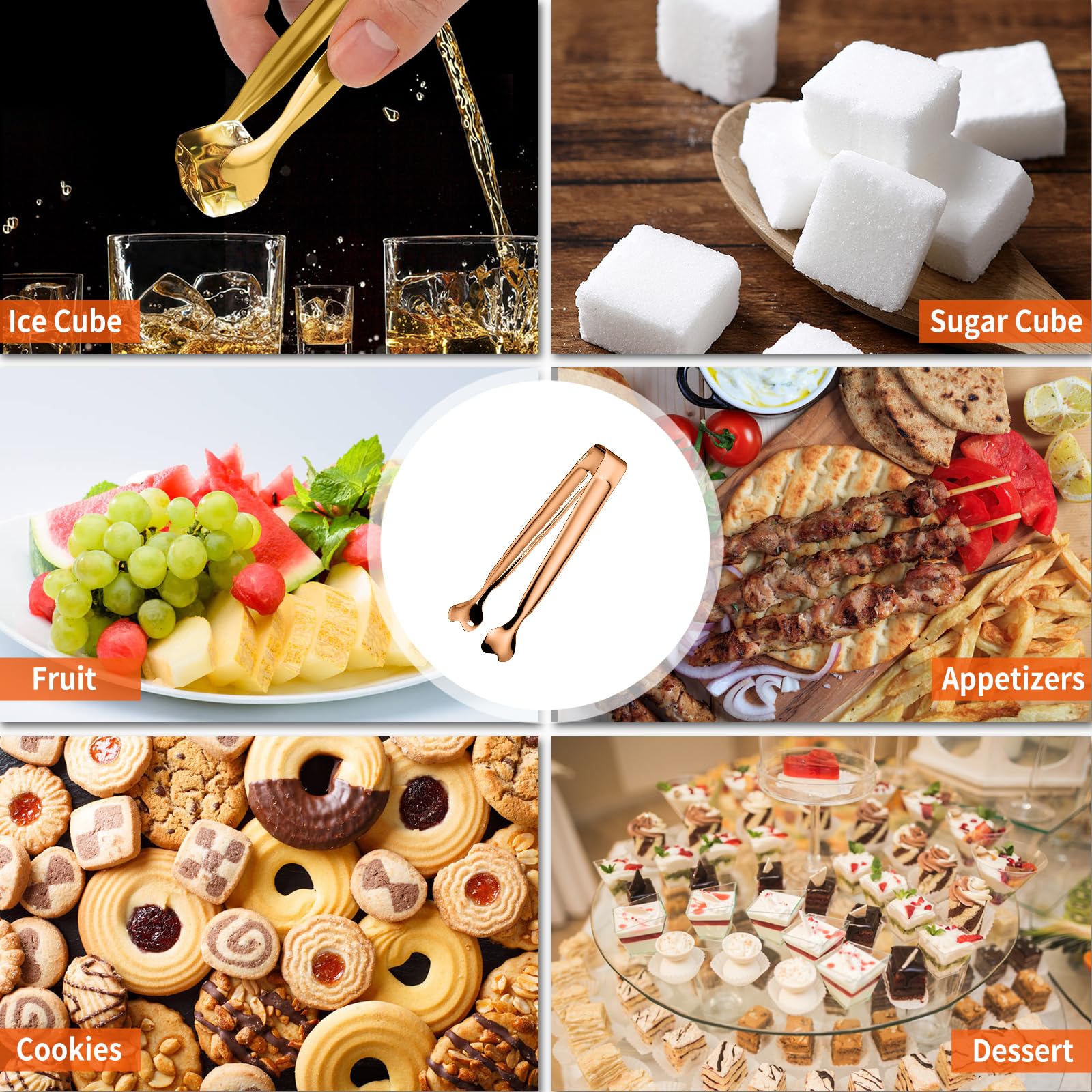 MULTI-PURPOSE: These small tongs are suitable for griping appetizers, charcuterie, lemon slices, pickle slices, meat slices, tacos, spaghetti, cheeses, omelettes, cookie, crescent rolls, jelly, buffet, hard candy, gummy, tea sandwiches, etc.