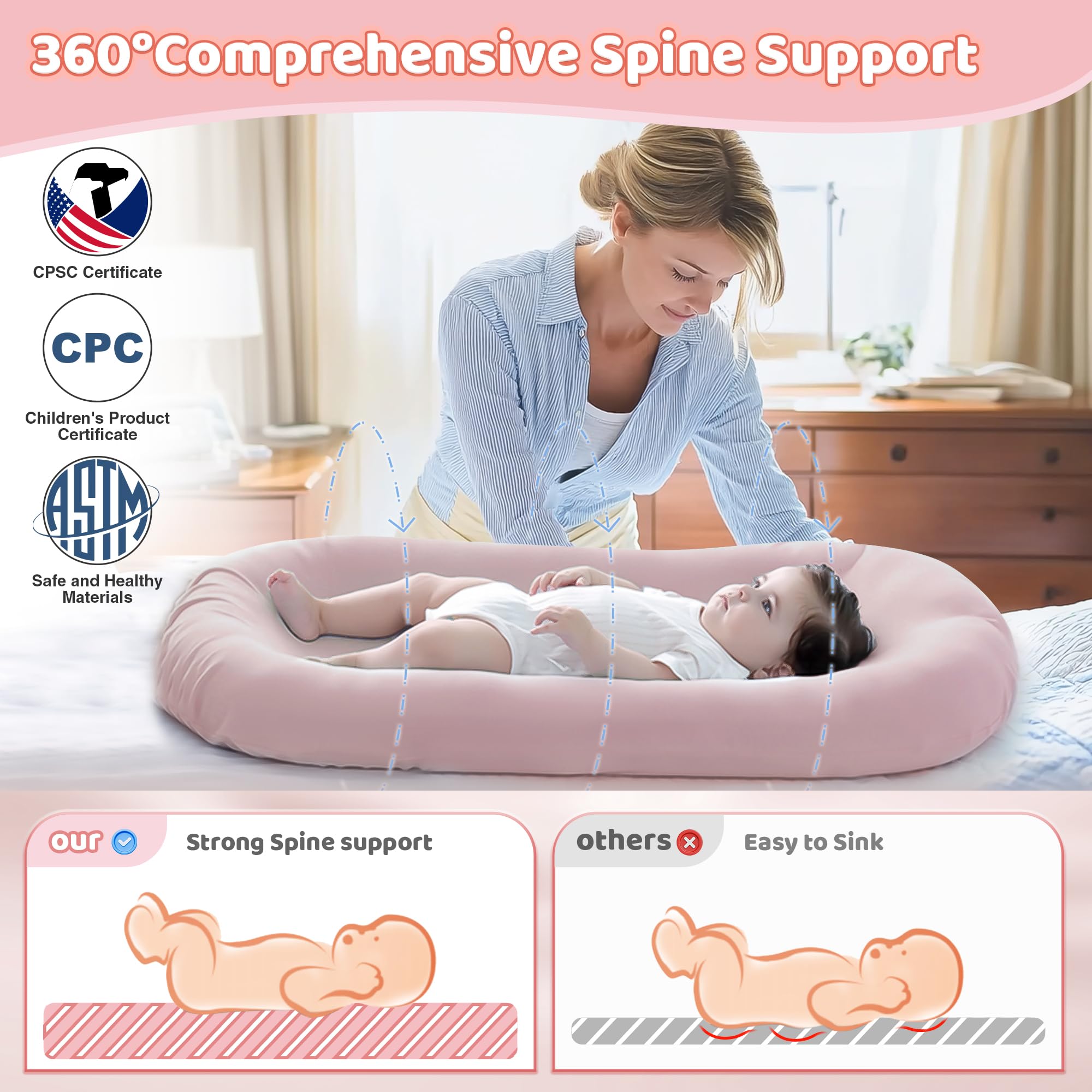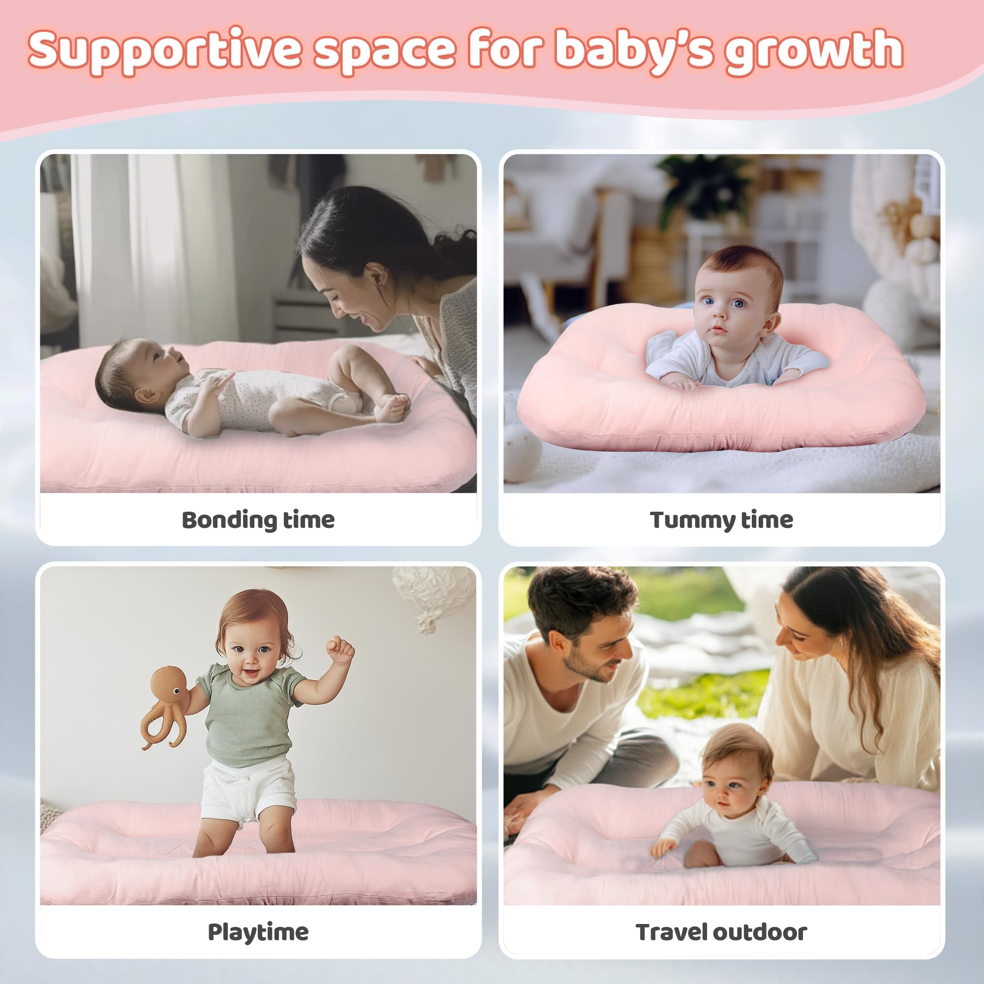 Supporting Your Baby’s Growth and Comfort: This infant lounger features a soft, supportive bumper and 3D polyester fiber filling that gently supports your baby's back, promoting healthy spinal growth. Whether your little one is tummy time playing, lounging, or learning to sit, the lounger provides gentle, comforting support