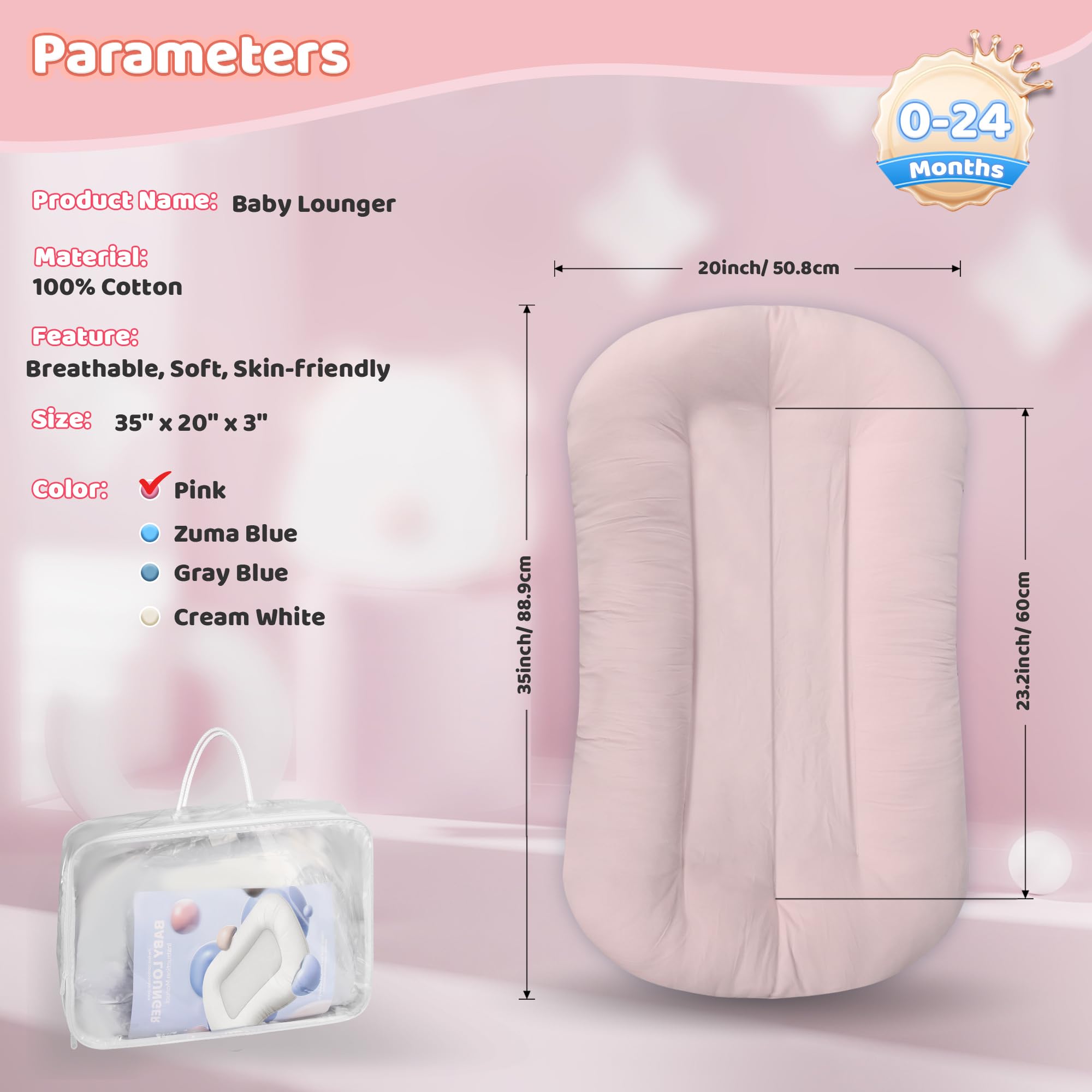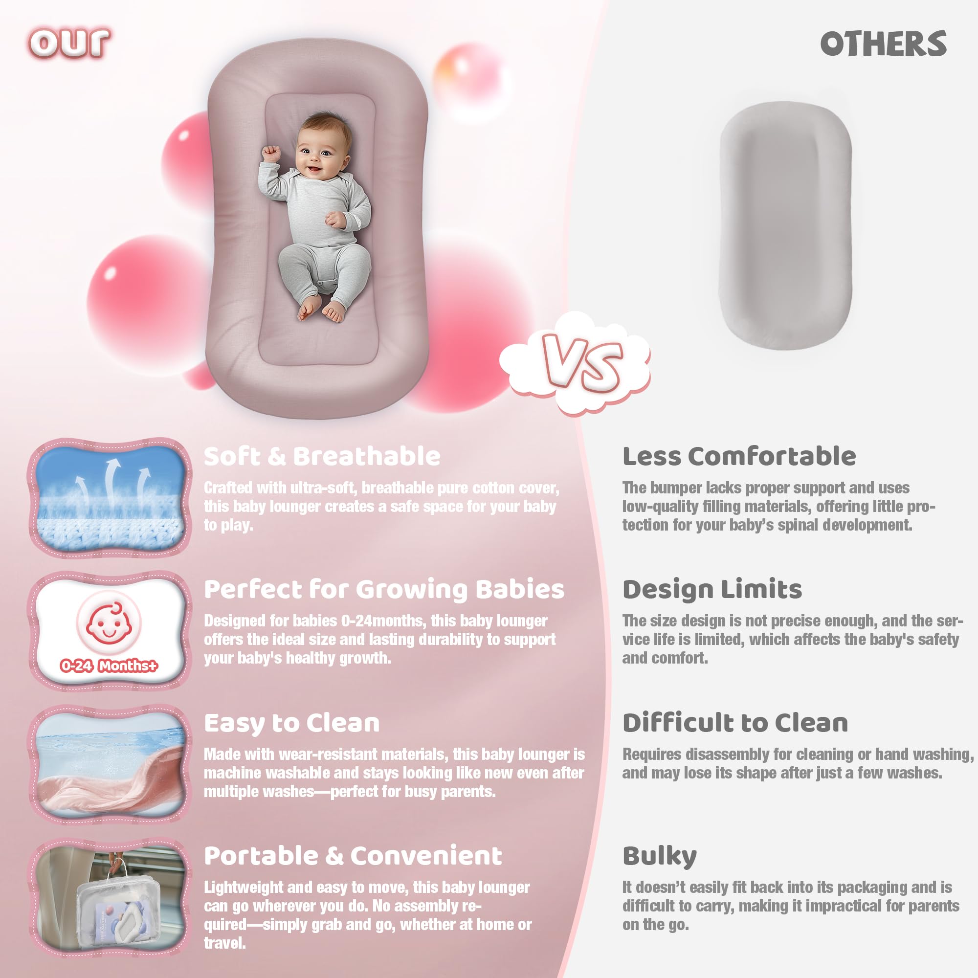 Gentle on Baby’s Sensitive Skin: Crafted from soft, breathable materials, this baby lounger features a pure cotton cover that promotes airflow and prevents overheating. It creates a comfortable space for your baby, so they can stay comfortable whether they're playing at home, enjoying family time in the living room, or lounging on the go
