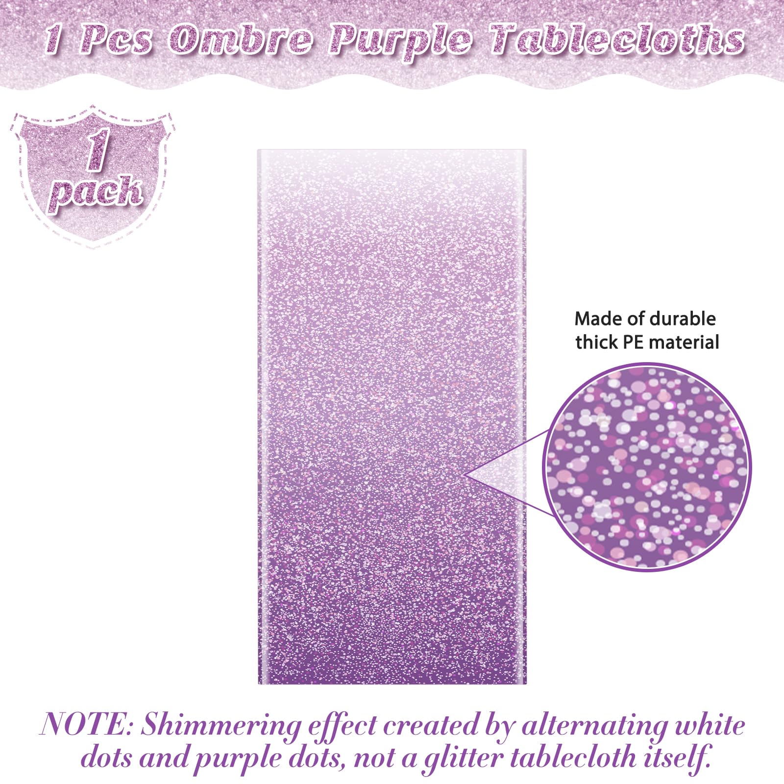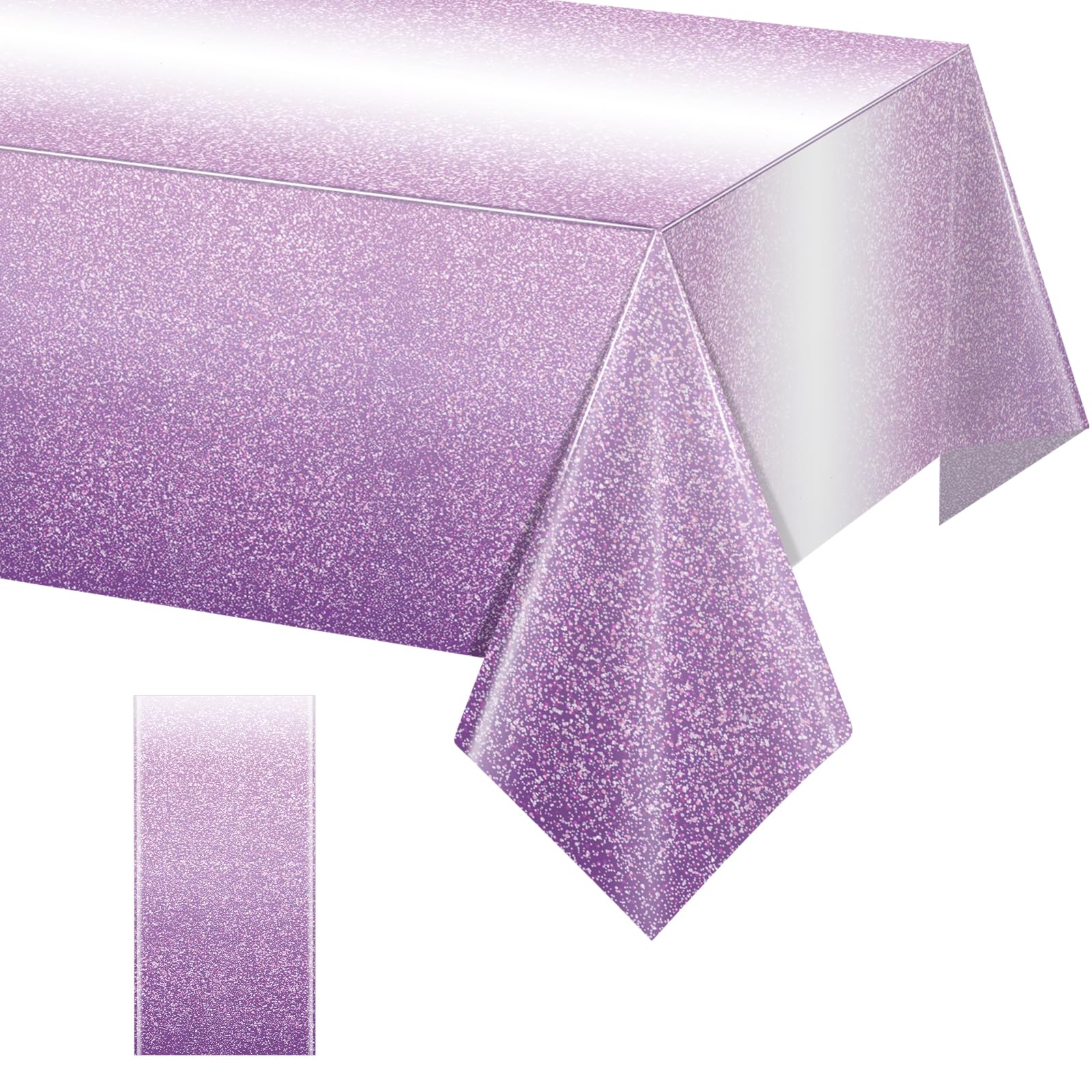 Purple Tablecloth Party Decorations With a captivating gradient purple color and adorned with charming purple and white dots, our purple pastel tablecloth showcases a mesmerizing gradient glitter design. This makes it an ideal centerpiece for your parties, adding a touch of elegance and sparkle to your event. Wide Applications: Our purple tablecloths party decorations aren't just limited to being used as tablecloths - they can also be used as party wallpaper, photo backdrops, and other party decorations to add more color to your party and create beautiful memories, suitable for birthdays, weddings, anniversaries, baby shower parties and more. Material: Plastic Size: 54 x 108 inch Color: We have various colors to choose from, please visit our store.