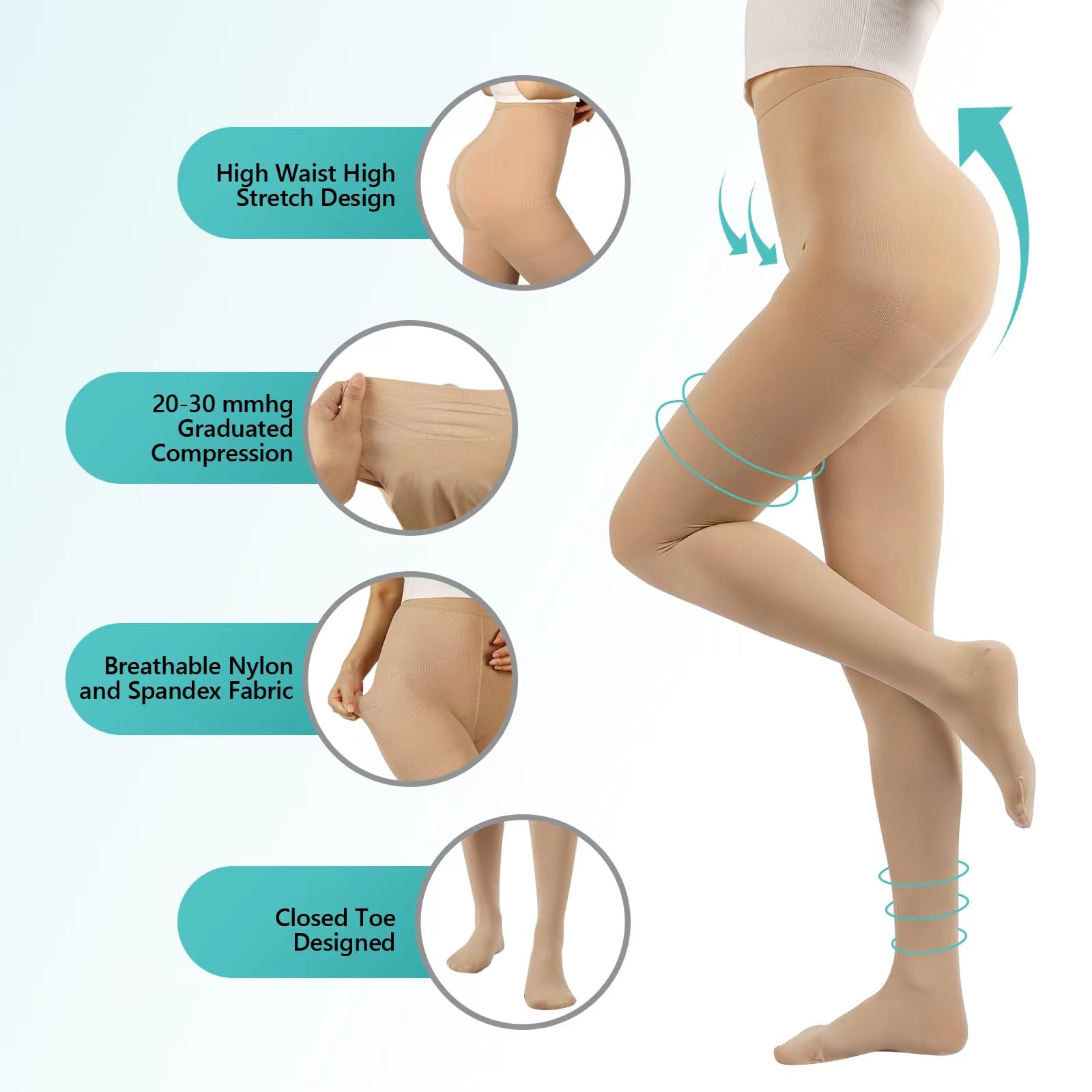 LUXUROIUS COMFORT: Experience unparalleled comfort and support with our meticulously crafted closed toe compression stockings. Made from high-quality 70% nylon and 30% spandex fabric, the breathable fabric reinforces the elasticated waist and crotch junction to help prevent the problem of the waist slipping down and easy tearing at the crotch. With a wide range of sizes, you can find the perfect fit for lasting comfort throughout the day.