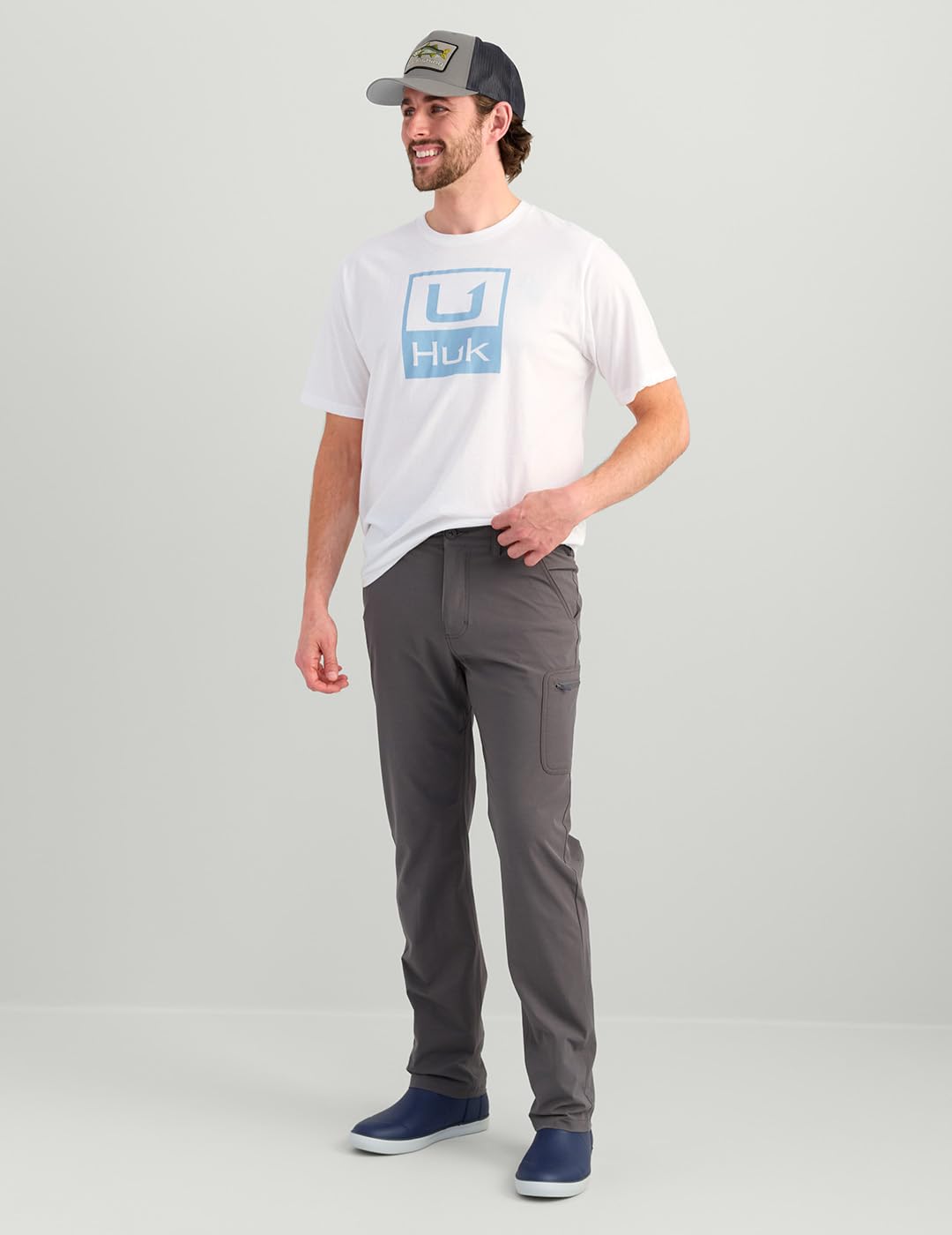 The Huk Next Level Pant - Designed with zippered front fly, adjustable waistband, zippered back pocket, cargo pocket and plier pocket.