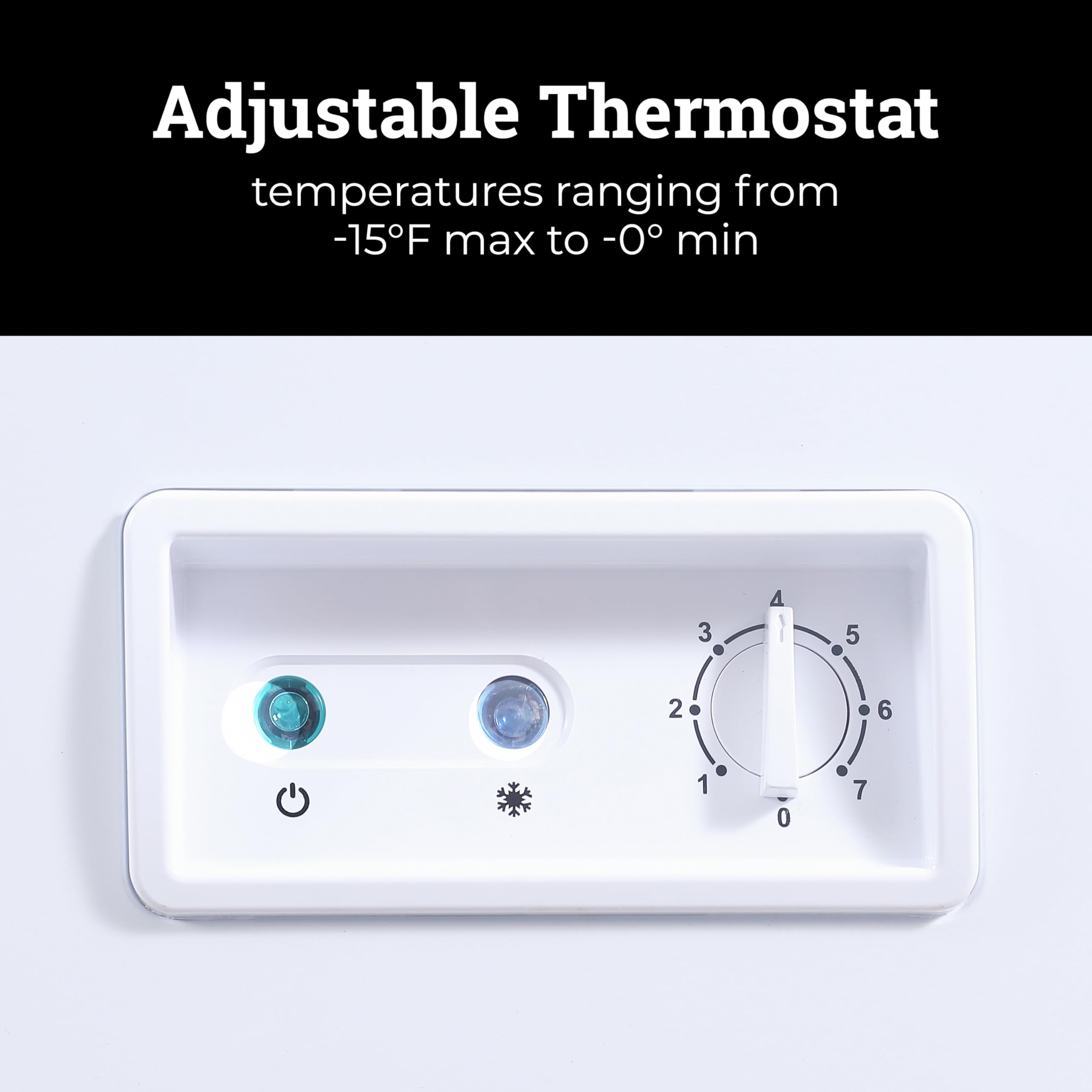 ADJUSTABLE THERMOSTAT: The adjustable thermostat is easy to access and features a minimum/maximum control dial that allows your temperature to be controlled from -10 to 10 degrees F