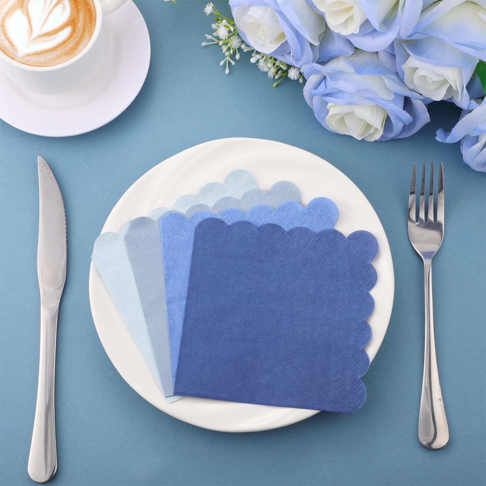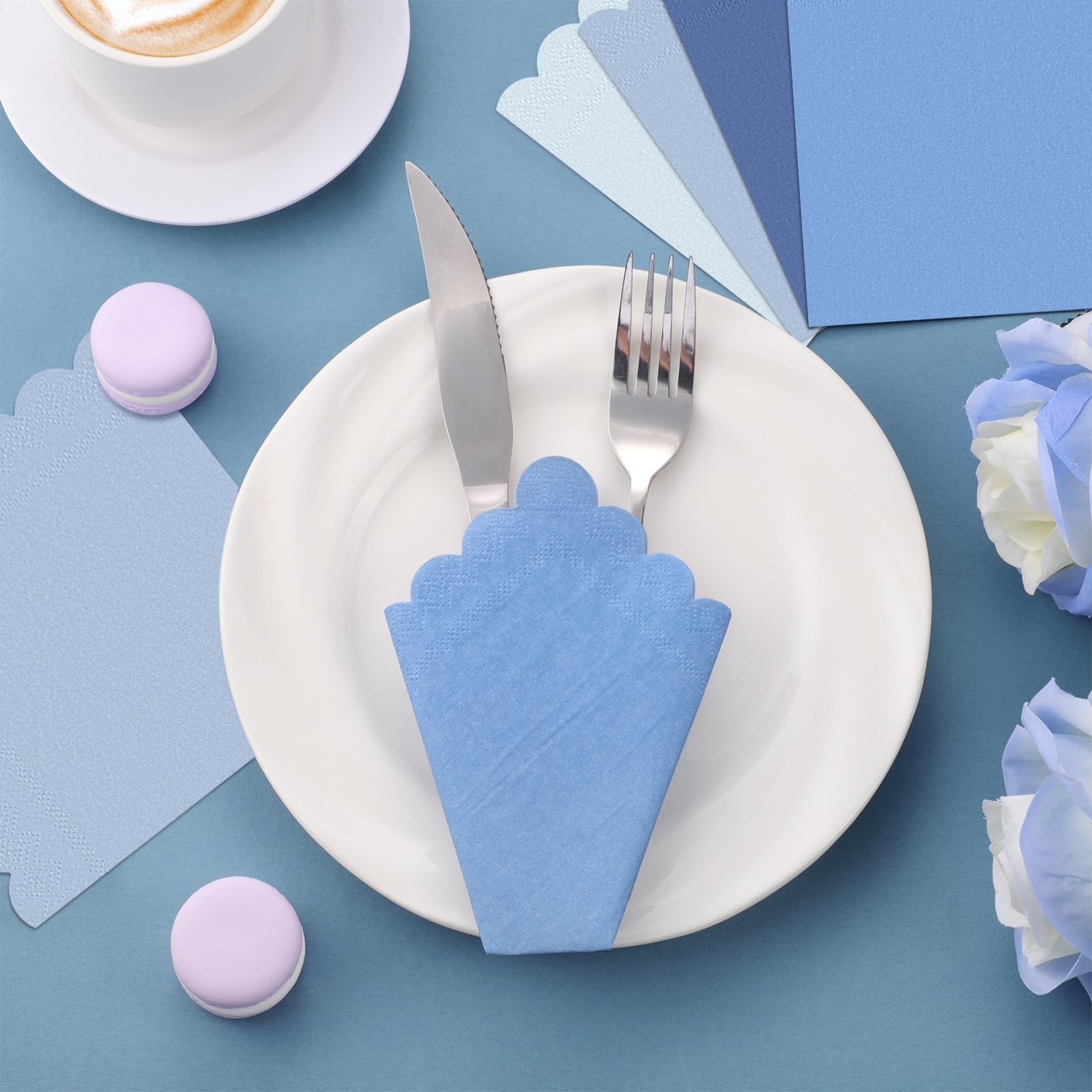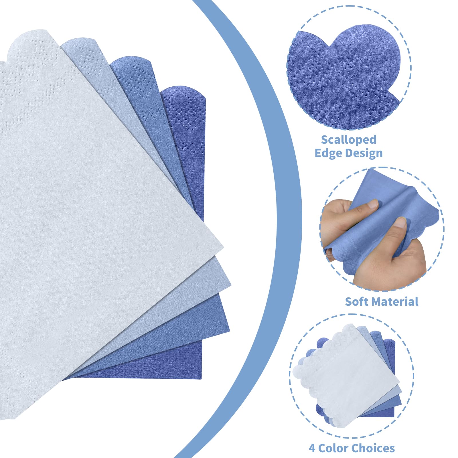【Gradient Blue Color Design】Disposable cocktail napkins are available in 4 different blue colors, from dark to light. The classic scalloped edge enhances elegance of dinner napkins, making it a better decoration for party tables.