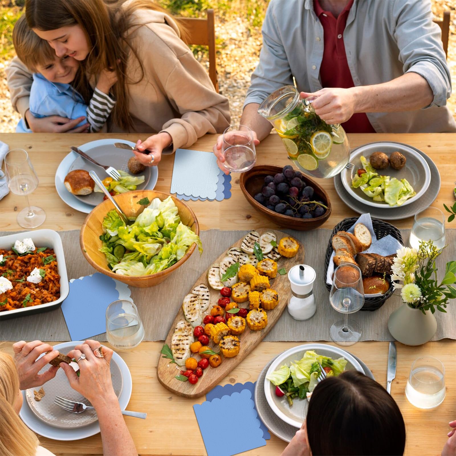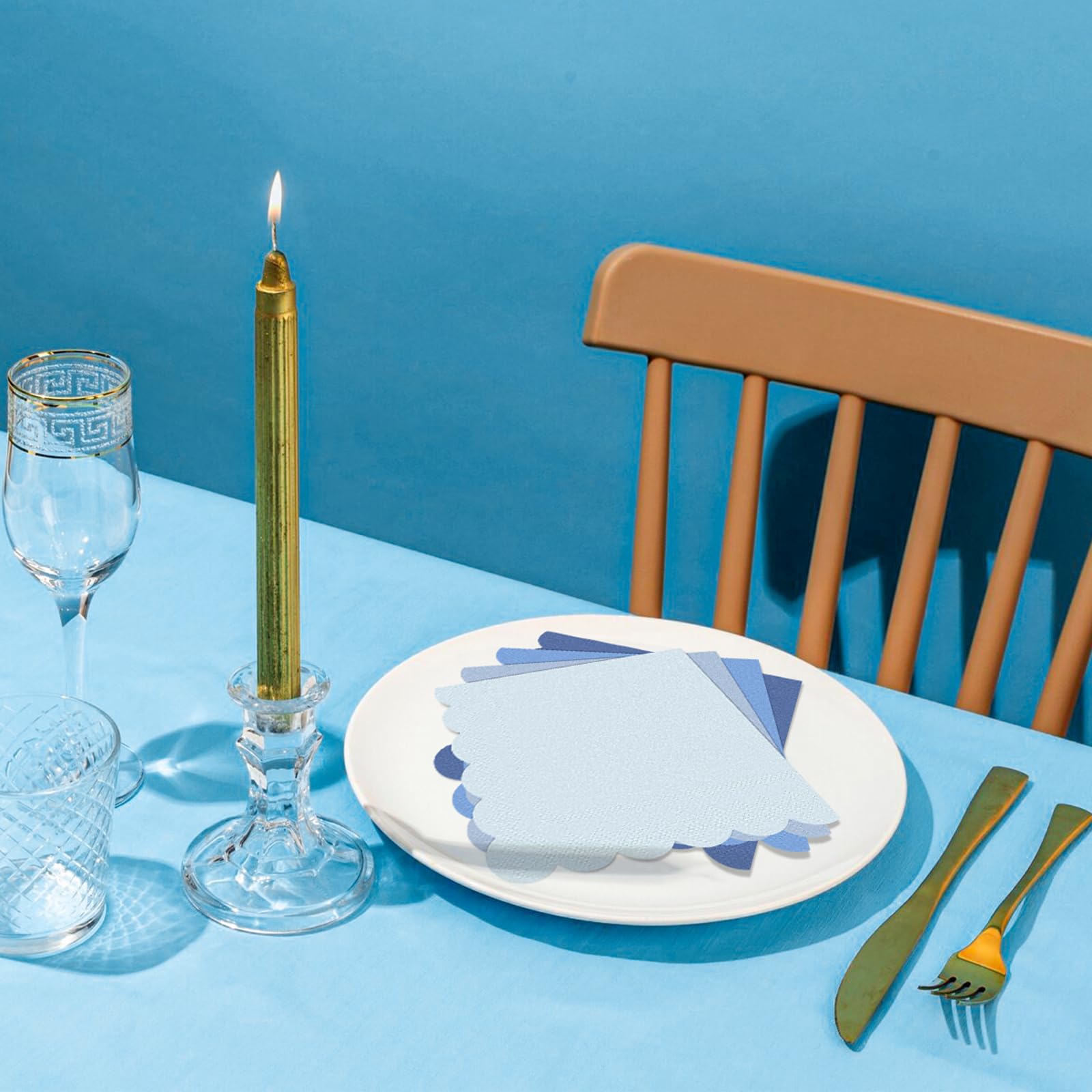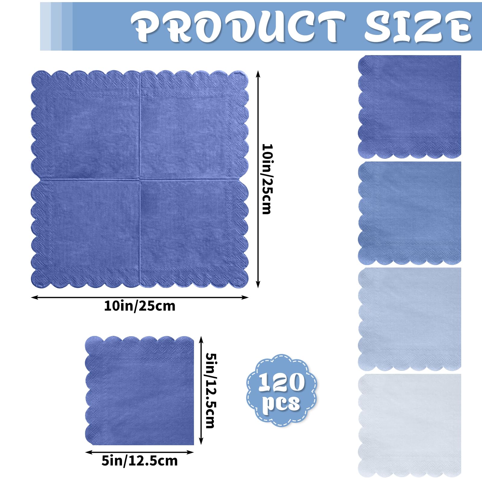 【Gradient Blue Color Design】Disposable cocktail napkins are available in 4 different blue colors, from dark to light. The classic scalloped edge enhances elegance of dinner napkins, making it a better decoration for party tables.