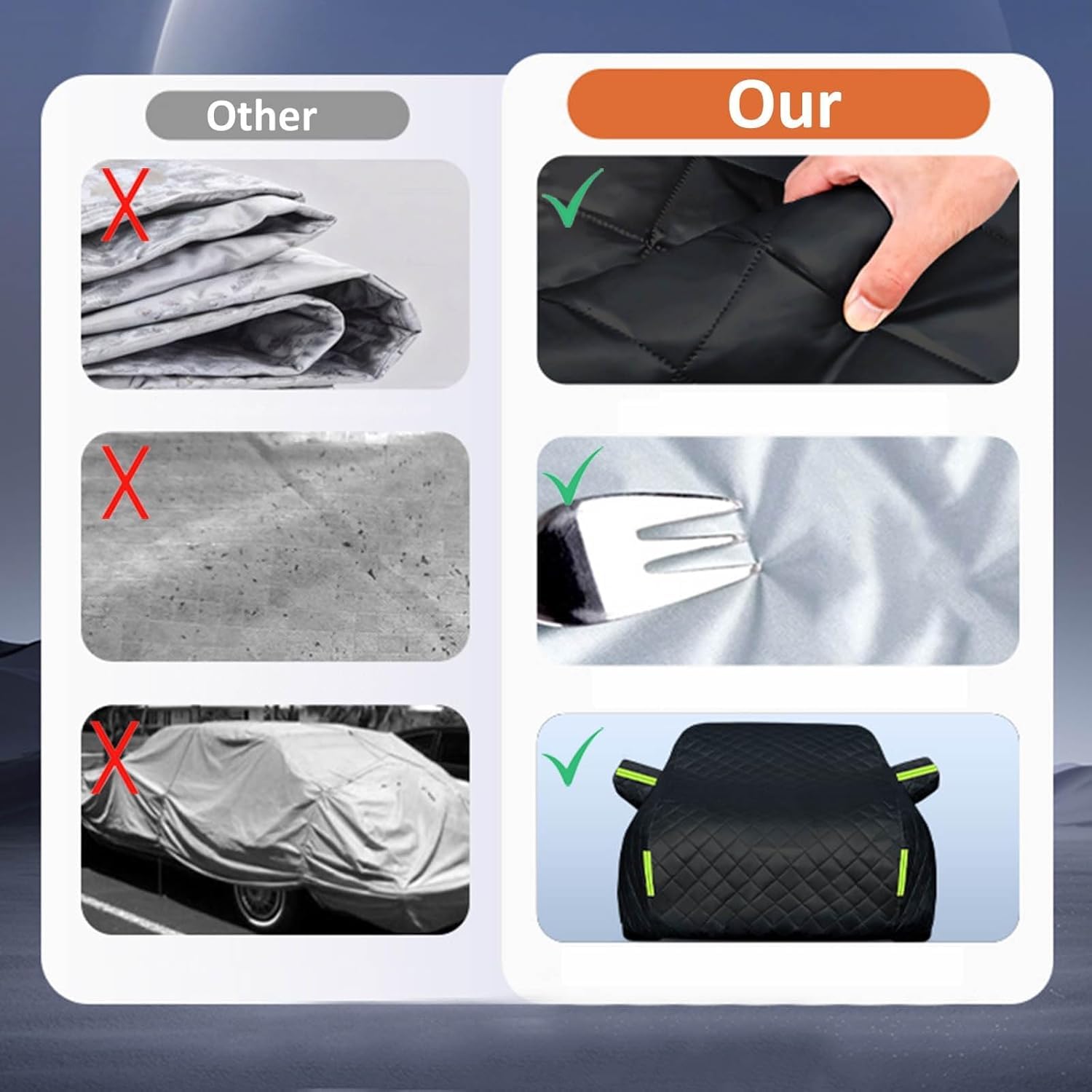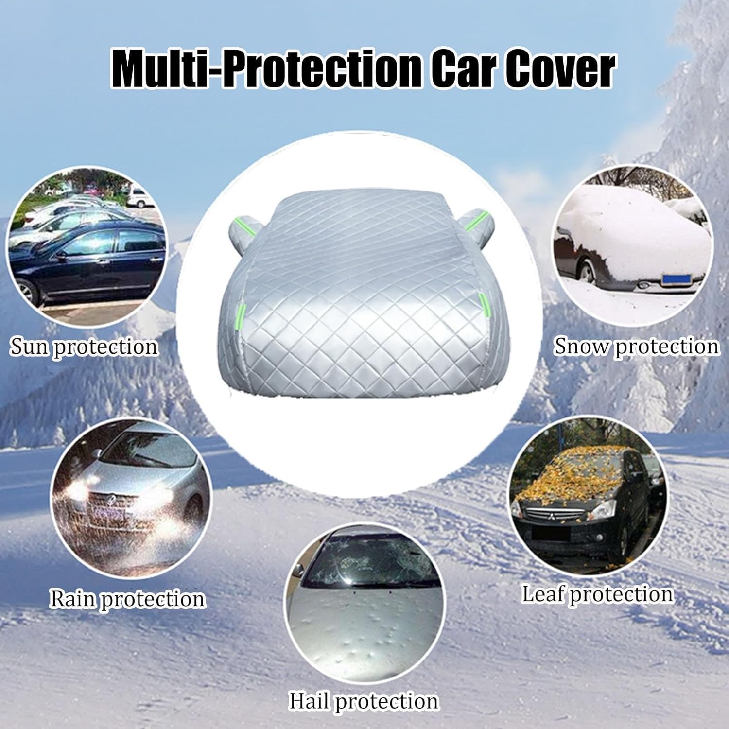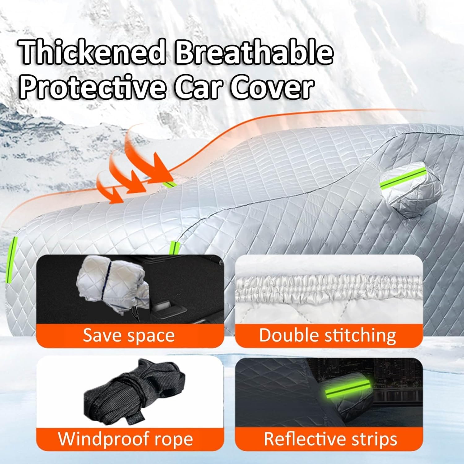 Comprehensive Protection: Our upgraded durable waterproof car cover provides exceptional winter protection against snow, ice, frost, and water; It also prevents snow and frozen wipers from damaging them, giving you peace of mind knowing your vehicle will stay dry in weather conditions
