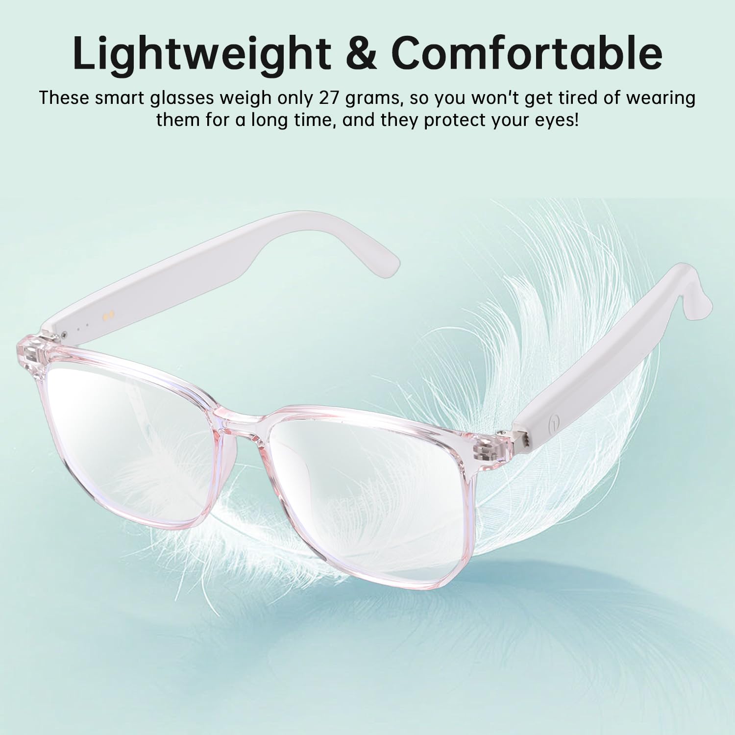 【Bluetooth 5.3 Design】 Smart glasses that are Bluetooth enabled with 5.3 Bluetooth technology, for clear and easy communication with beautiful smart features such as the touch and voice assistant compatibility making it easy for the user to carry out tasks.It also comes with clear light pink frames designed for women.