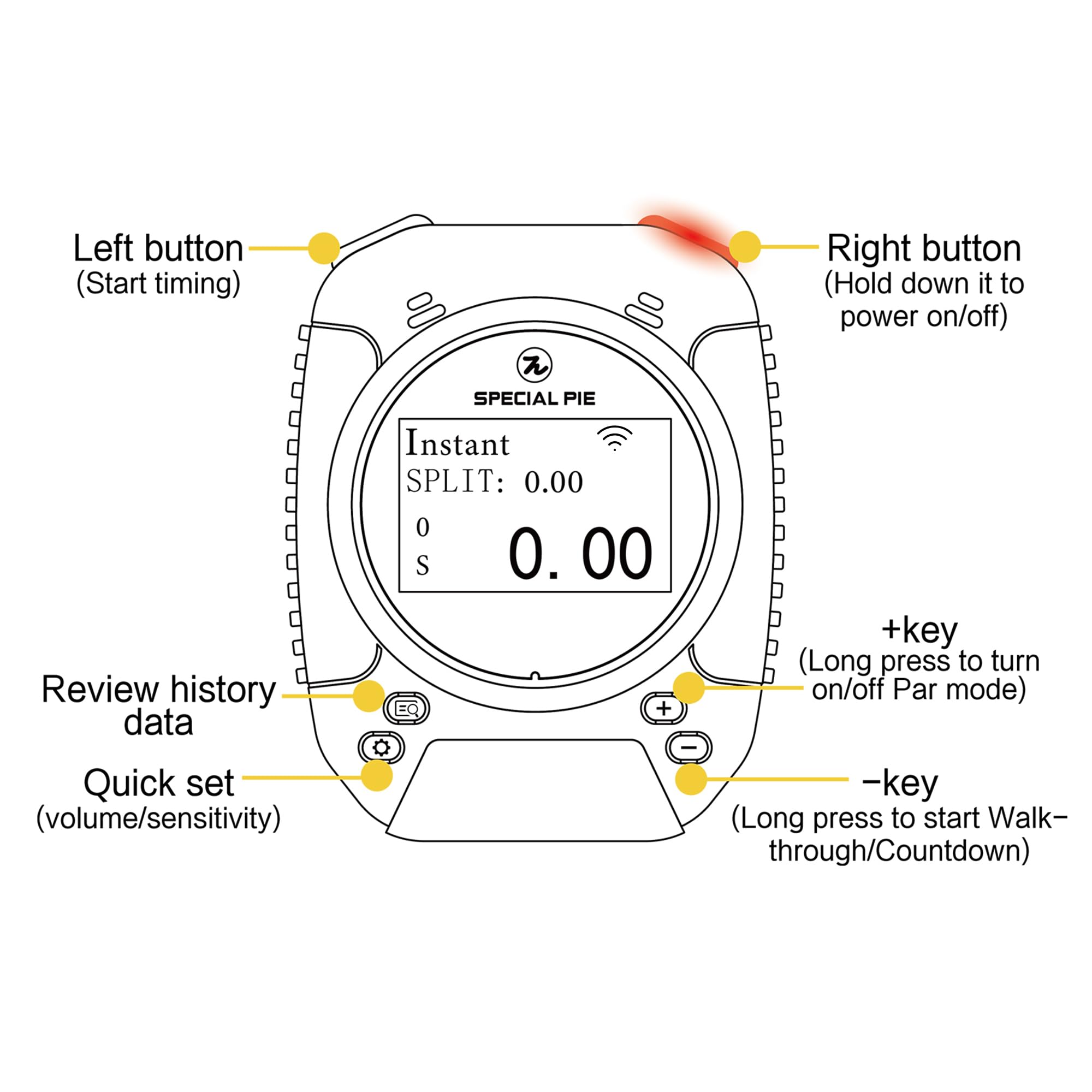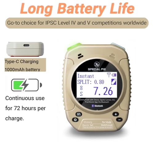 1000mAh Battery – 72H Runtime: Equipped with a powerful 1000mAh battery, this shot timer delivers up to 72 hours of continuous operation and over 3 years of standby time. Designed for long training sessions and multi-day competitions without constant recharging.