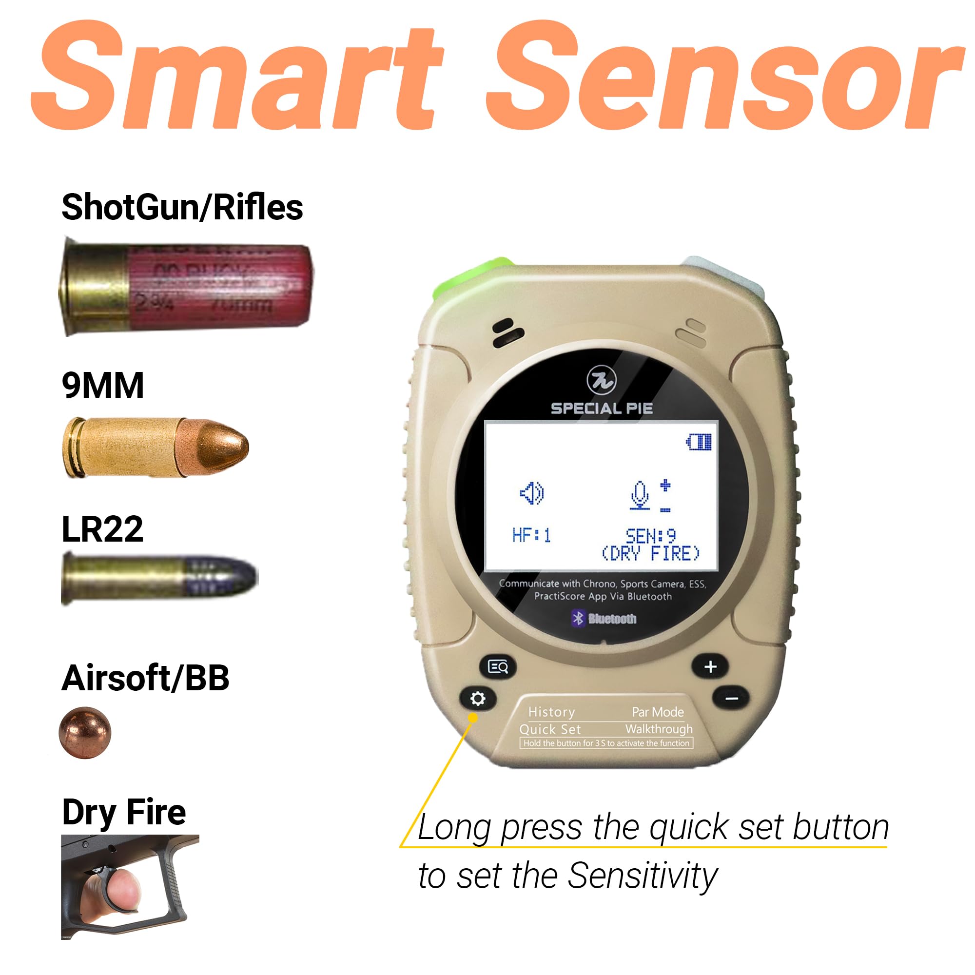 Smart Sensor + Echo Filter Tech: Features a smart acoustic sensor that detects dry fire clicks, BB guns, CO2, .22LR, 9mm, and higher calibers with precision. Built-in echo filtering ensures accurate timing even indoors or in echo-prone environments. Rated IP4 water-resistant – no worries even in rainy weather.