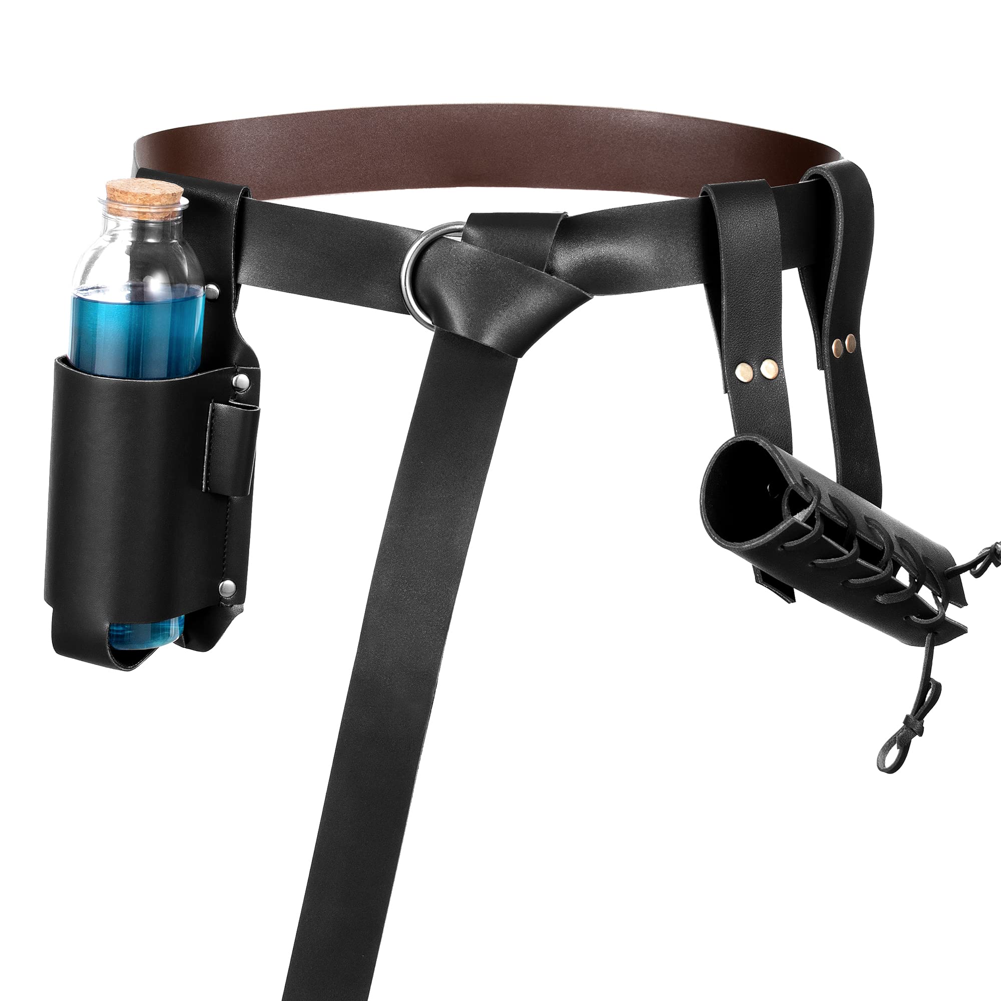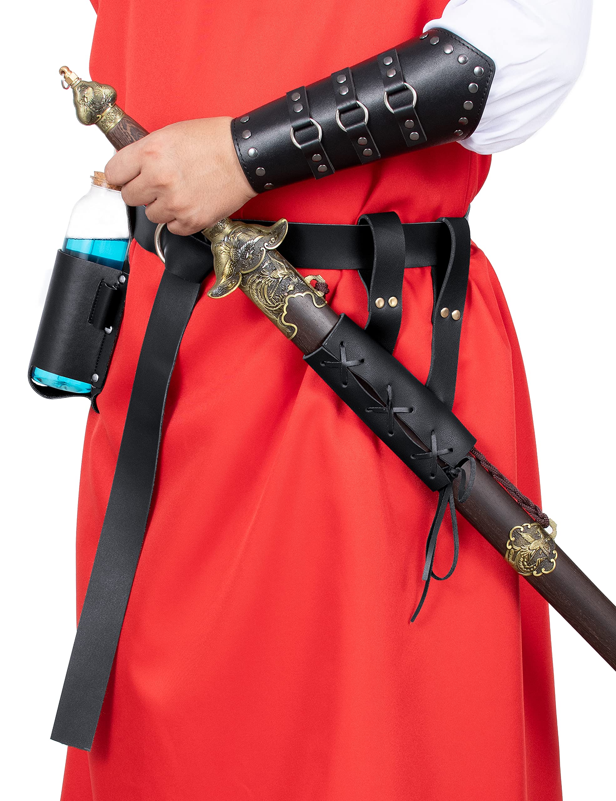 Package includes: Type1~7: PU leather single shoulder belt *1, Shawl scarf *1,PU leather renaissance medieval waist belt *1, PU leather punk gothic bracer*2, Dark magic cork potion bottle and cover *1 ,Medieval renaissance sword frog *1 , 7-piece set. Type8~9: PU leather shoulders belt *1, Shawl scarf *1,PU leather renaissance medieval waist belt *1, PU leather punk gothic bracer*2, Dark magic cork potion bottle and cover *1 ,Medieval renaissance sword frog *1 , 7-piece set. Type10~11: PU leather single shoulder belt *1, Shawl scarf *1,PU leather renaissance medieval waist belt *1, PU leather punk gothic bracer*2, Dark magic cork potion bottle and cover *1 ,Medieval renaissance sword frog *1 , 7-piece set. Unisex medieval knight leather belt shawl men women's steampunk renaissance accessory half shoulder cape scarf buckle bracers sash armlet armband armor shrug retro no belt eyelets renaissance waist belt retro magic cork potion bottle and cover sword frog accessories cosplay party costume Armor is fully wearable and comfortably made.string ties make it fairly adjustable to different arm sizes.