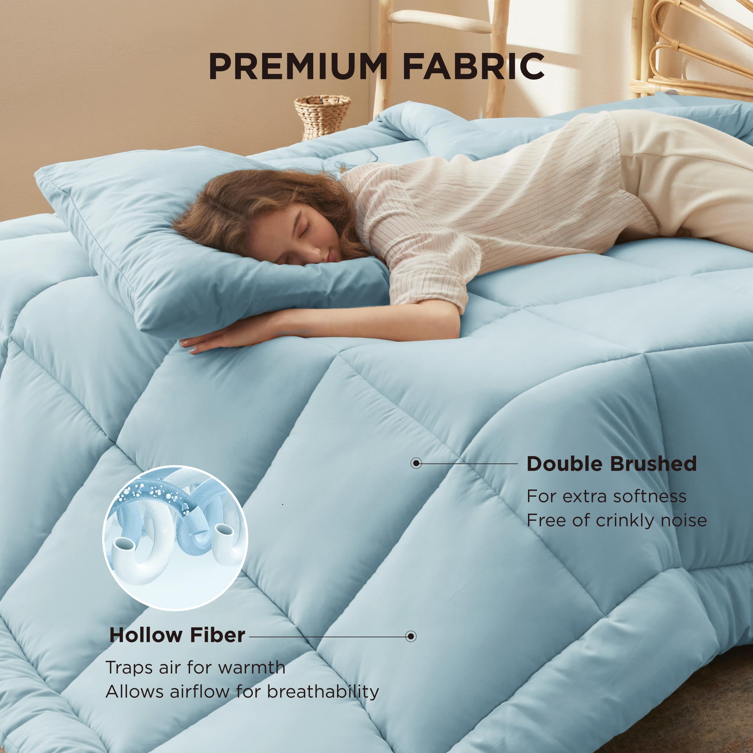 EASY TO CARE:Please gently fluff the comforter and let it rest for up to 24-48 hours after taking it out of the box to ensure maximum fluffiness. Machine wash separately in cold water on a gentle cycle and tumble dry low for a like-new restoration
