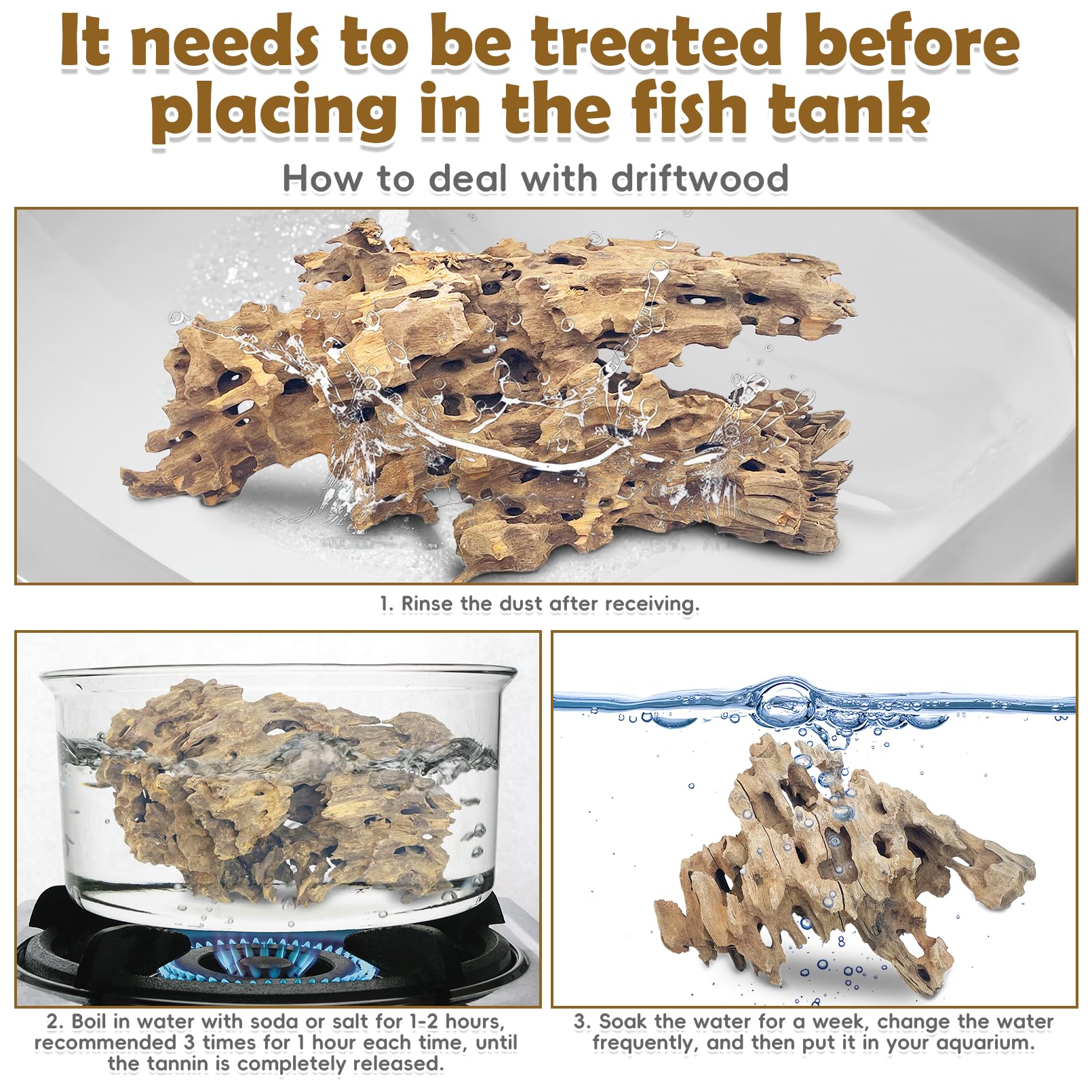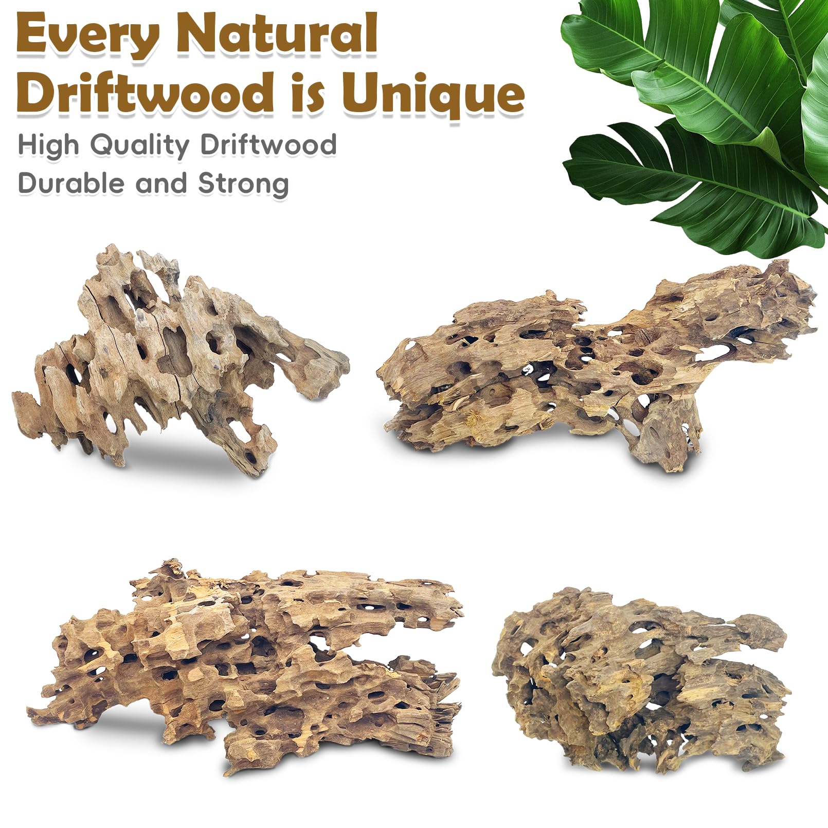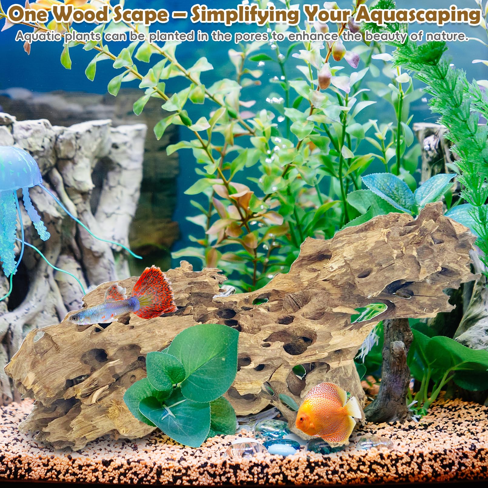 100% Natural wood: Made of 100% natural large driftwood, each piece has a unique shape. Interesting small fish driftwood with holes can be safe for your fish to hide, making your fish tank look more lively and cute