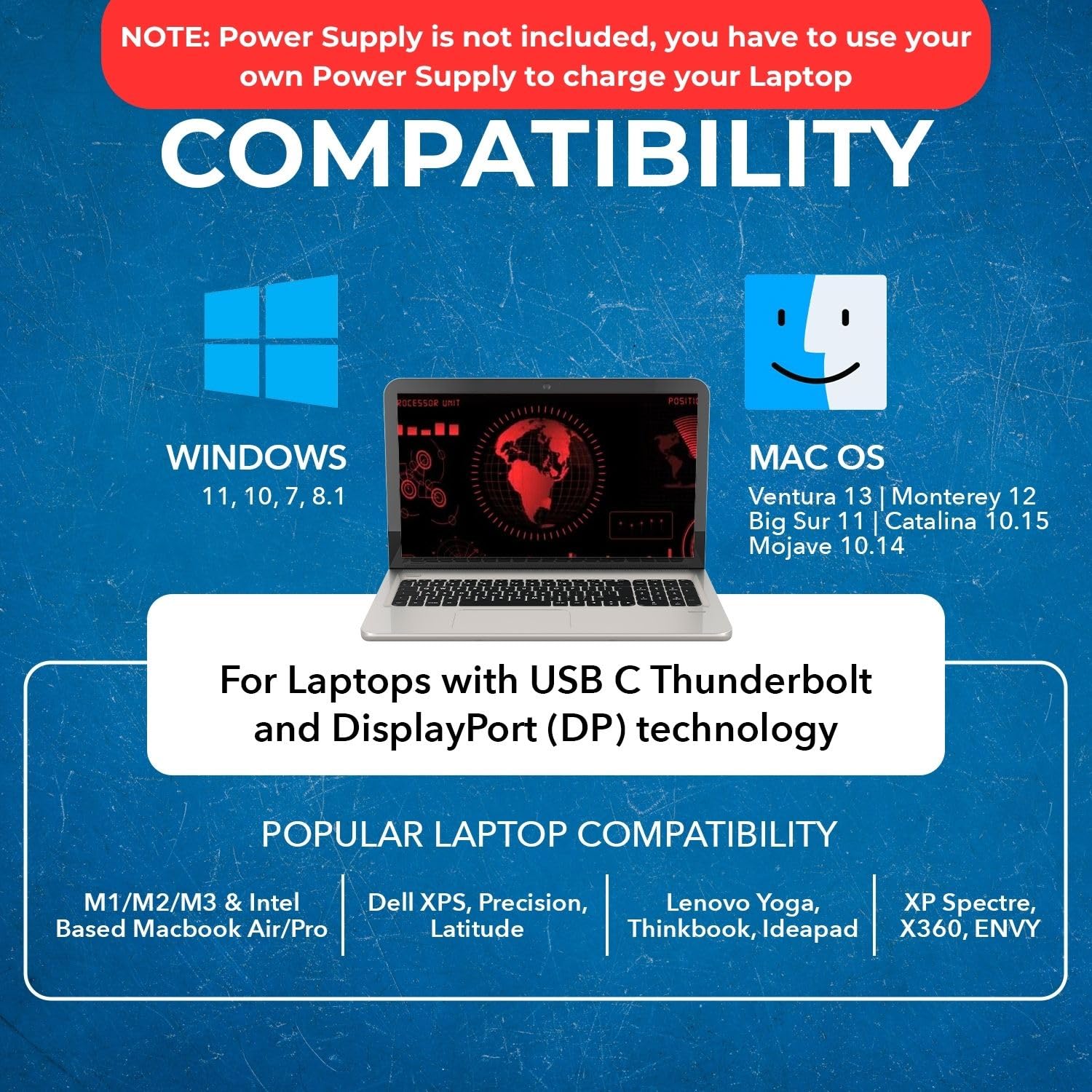 Wide Compatibility USB-C Hub with Multiple Ports – Works with USB-C DisplayPort Alt Mode and Thunderbolt 3/4 devices. Compatible with Windows, Mac OS, Chrome OS, and Android. Perfect computer docking station for Dell, MacBook Pro, Lenovo, and more. (Driver required; not supported on iOS/Linux/Unix).