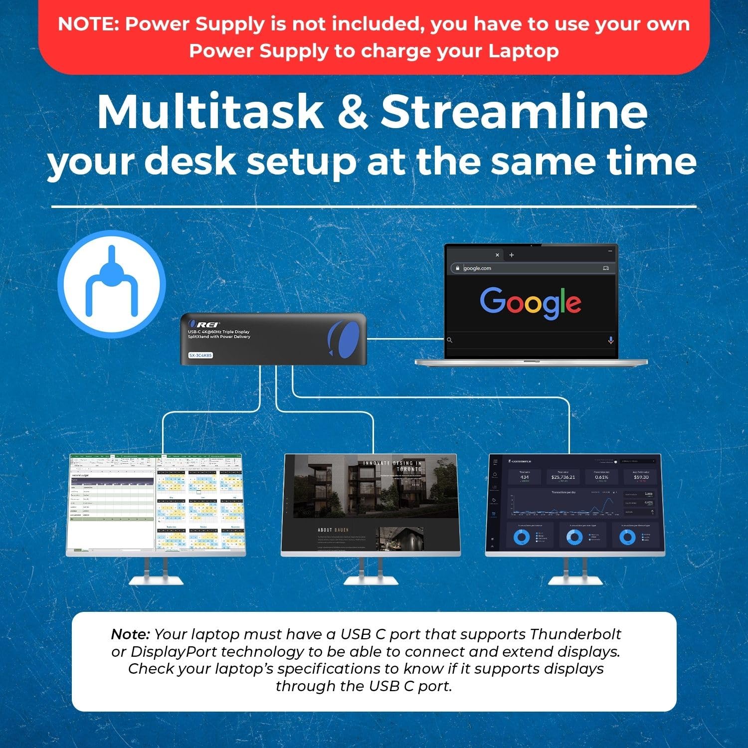 All-in-One Laptop Docking Solution – Combines HDMI docking station, DisplayPort splitter, and USB-C hub in one compact device. Ideal as a laptop triple screen extender, HDMI splitter extended display adapter, and USB-C to DisplayPort and Ethernet hub for work or travel.Backed by a full 1-year warranty and lifetime OREI support; it includes SplitExtend SX-3C4K85 and user manual.