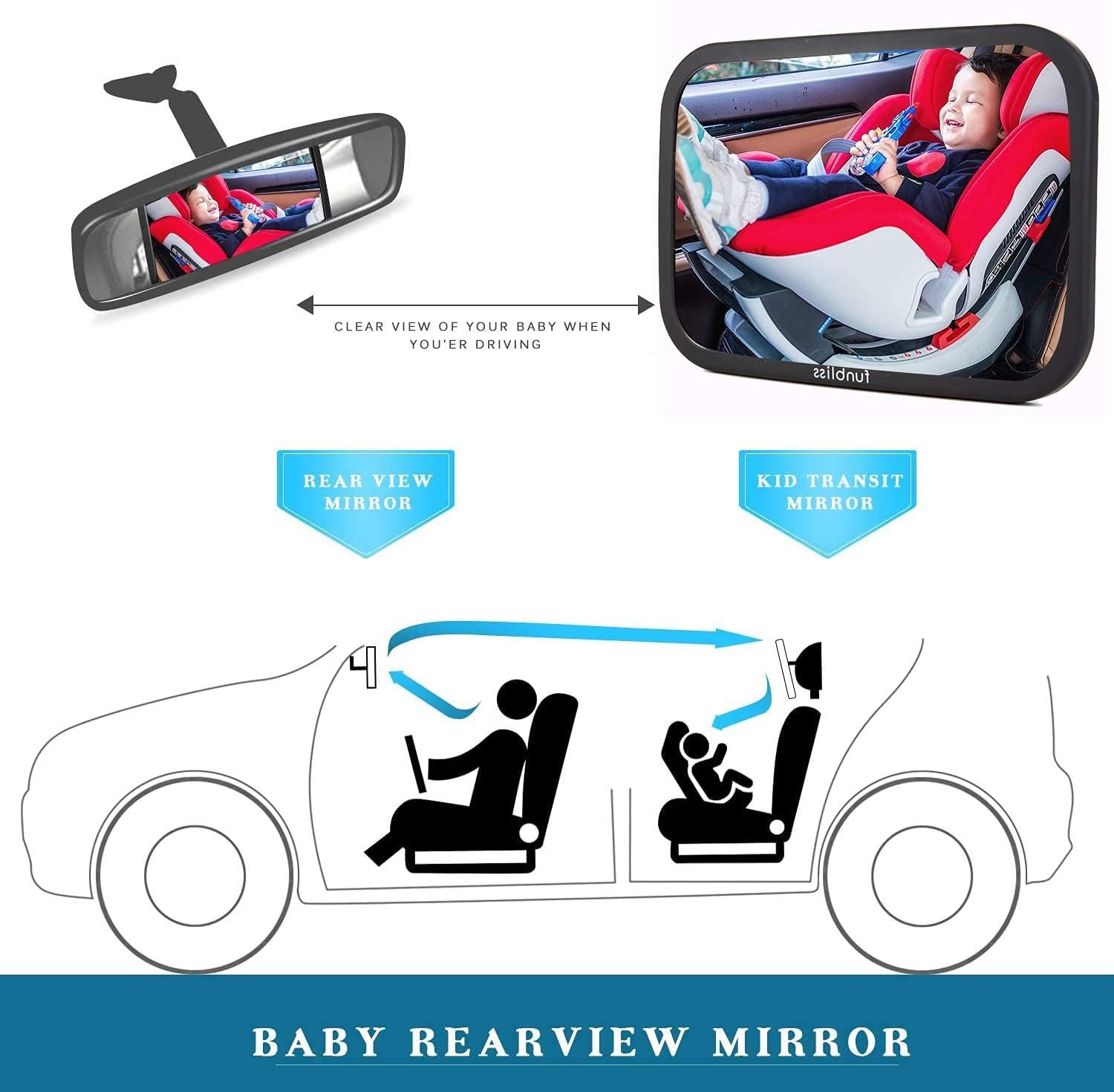 Ensure safety on the road with Funbliss rear facing car seat mirrors, featuring shake-proof and shatterproof design for a secure view of your baby while driving.