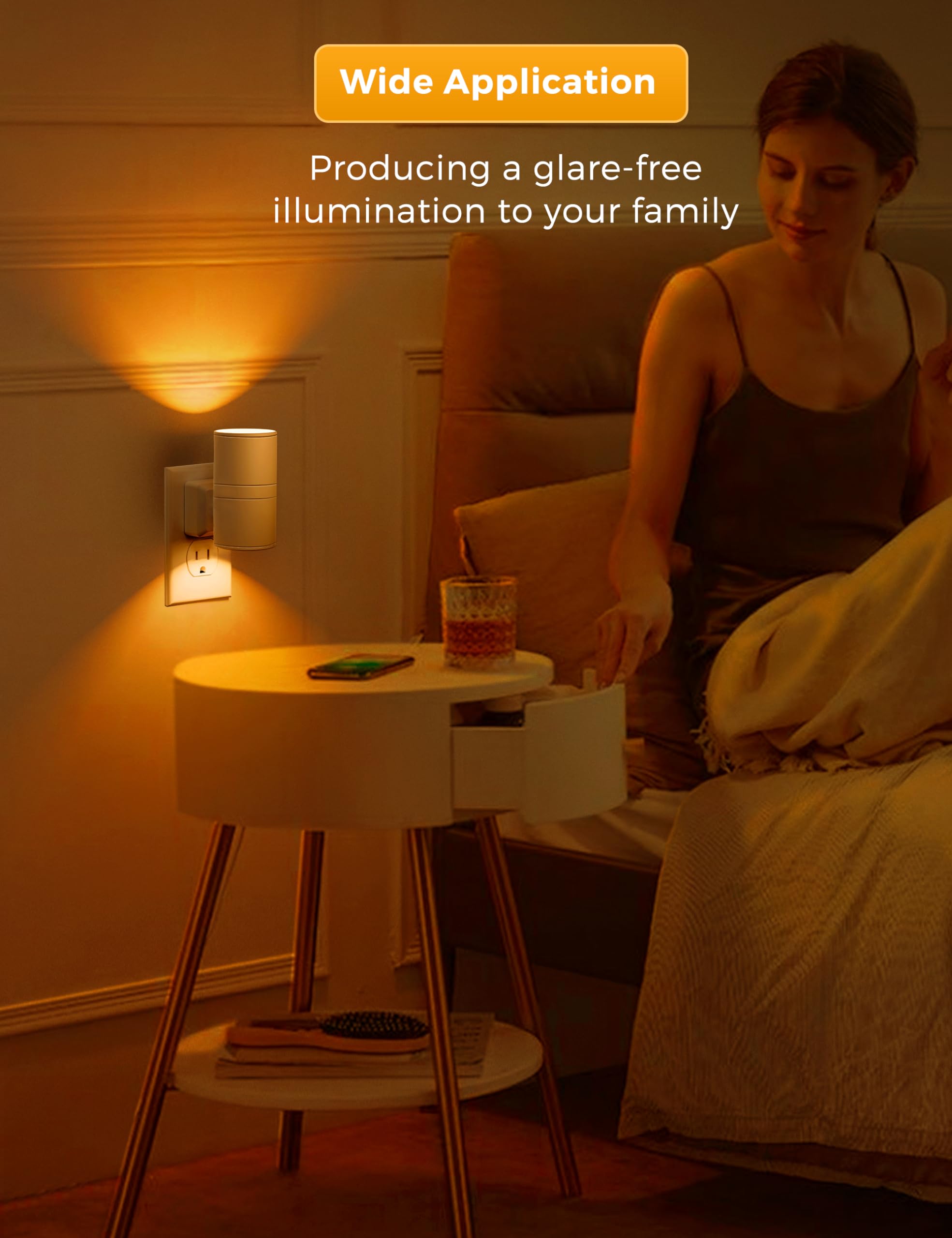 Widely Used Nightlight -- With 2000K warm light, LOHAS amber night light is suitable for bedroom, bathroom, hallway, nursery, kid’s room, kitchen, stairway, etc.