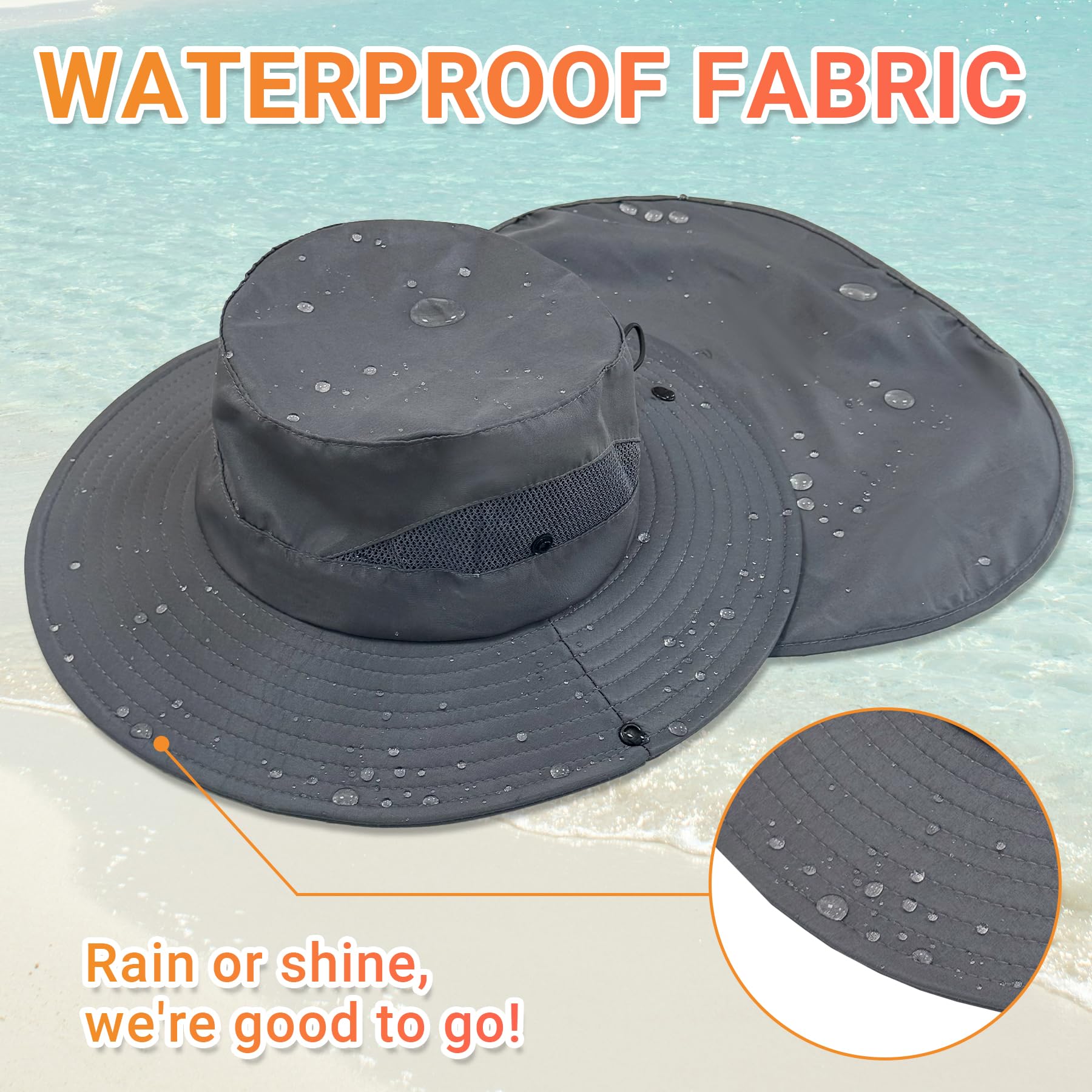 Sun Protection & Waterproof: The sun hats for men women has UPF 50+ excellent sun protection effect, which can protect you from sun damage. The sun hat is waterproof and wide brim and neck flap keeps your face and neck from the strong sun
