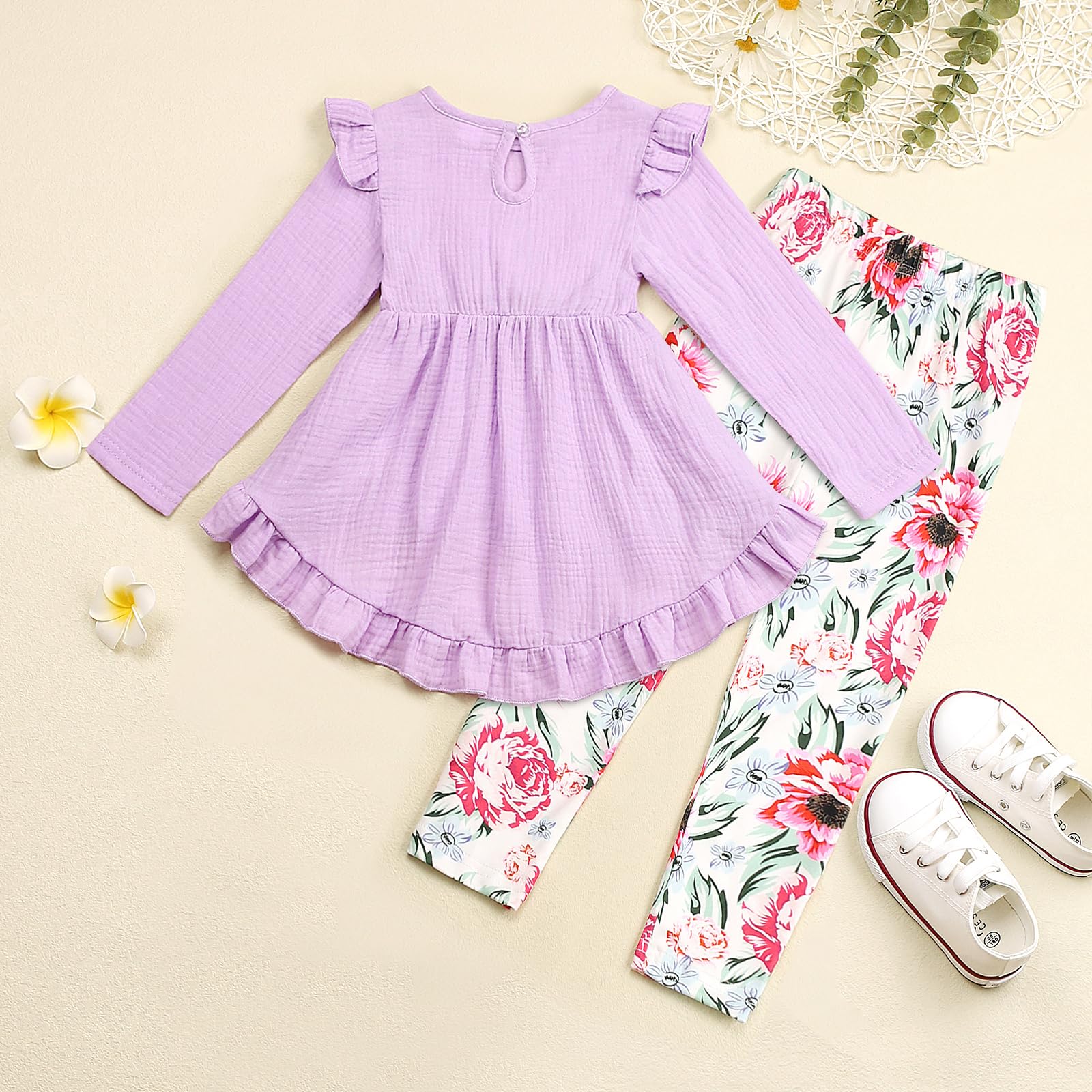 Description Toddler Girl Clothes Ruffle Sleeve High Low Top Floral Allover Pant 2PC Kid Girls Fall Winter Outfit Set