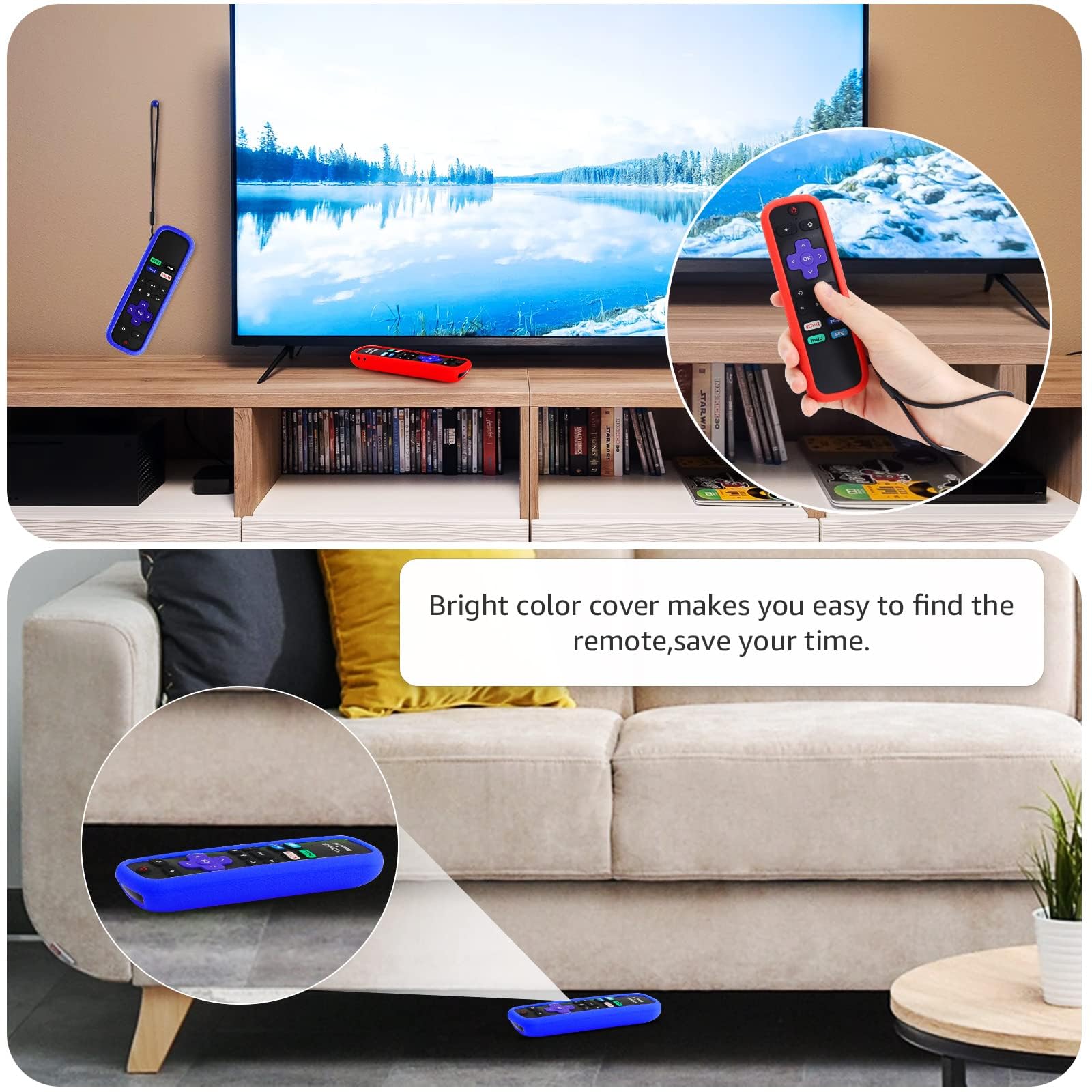 Easy to Find Your Remote: Getting this bright and fun color remote cover for roku lets you easy to find your roku premiere remote with a silicone remote cover and save your time, especially when you have multiple remotes mixed together.