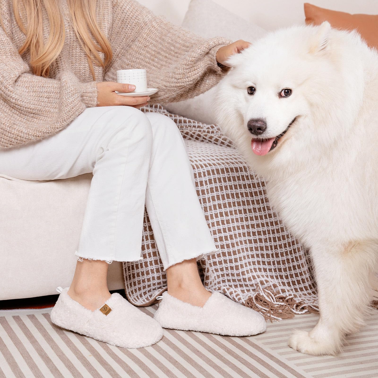 Material: There is a soft faux wool upper with a polar fleece lining for added warmth during the cold winter season. Reminder: Our slippers have soft fur, so avoid frequent washing to keep them in great condition